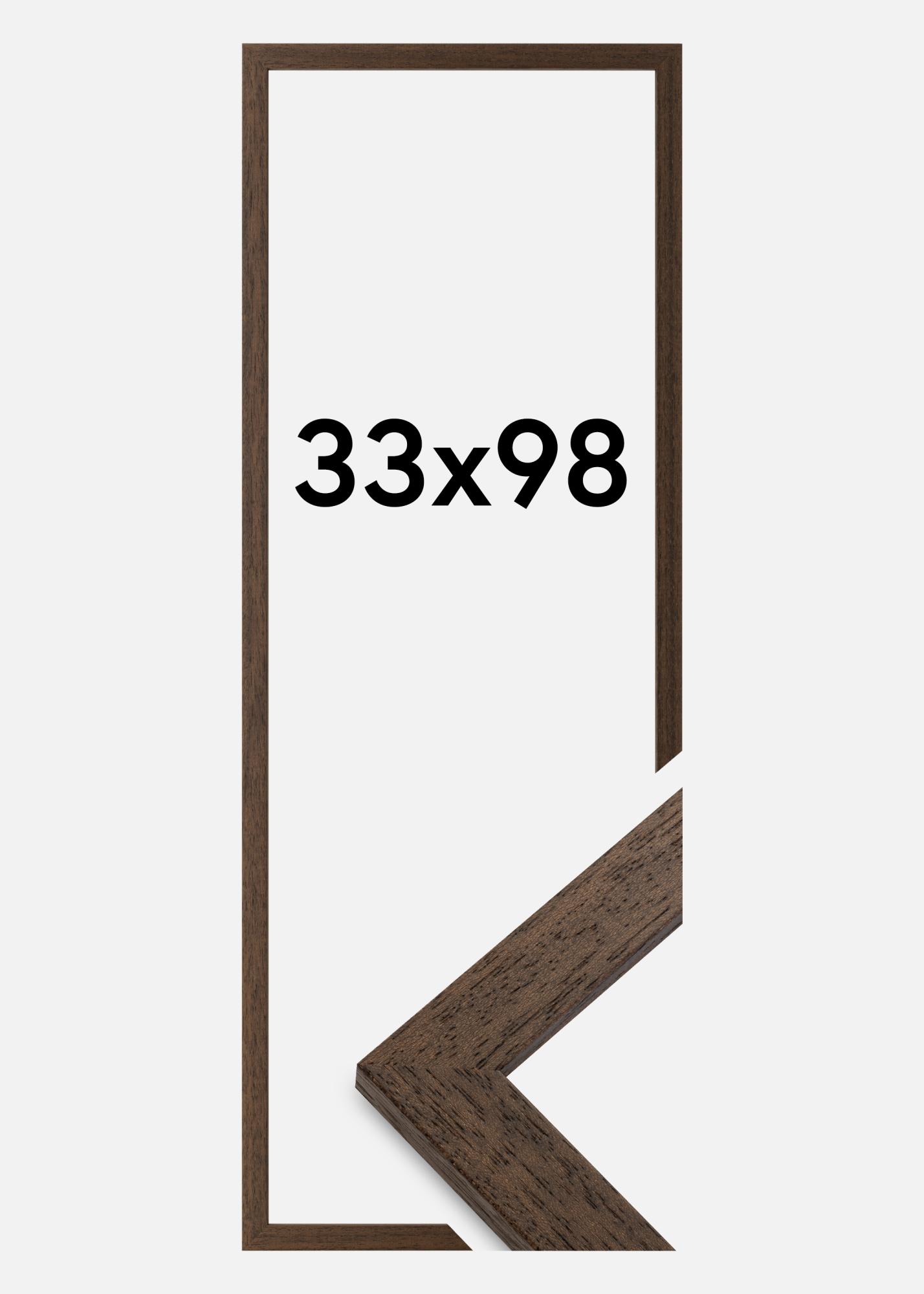 Forvandle favorittbildene dine til kunstverk med denne vakre fotorammen i størrelsen 33x98 cm. Denne bilderammen er laget av tre av høy kvalitet og har en rustikk og naturlig design i en mørkebrun finish. Den matte overflaten og den tydelige trestrukturen gir en varm og organisk følelse, noe som gjør den ideell for å skape en innbydende atmosfære i hjemmet ditt.