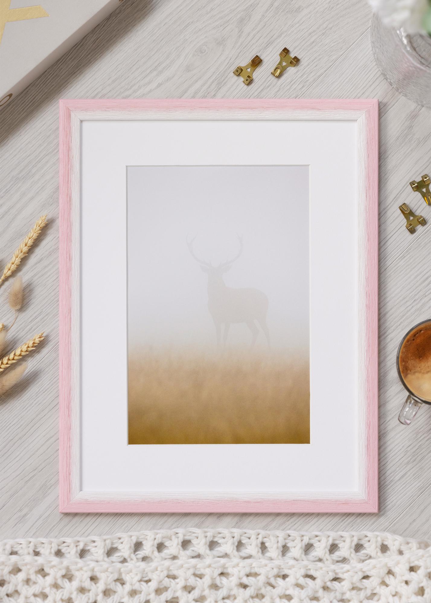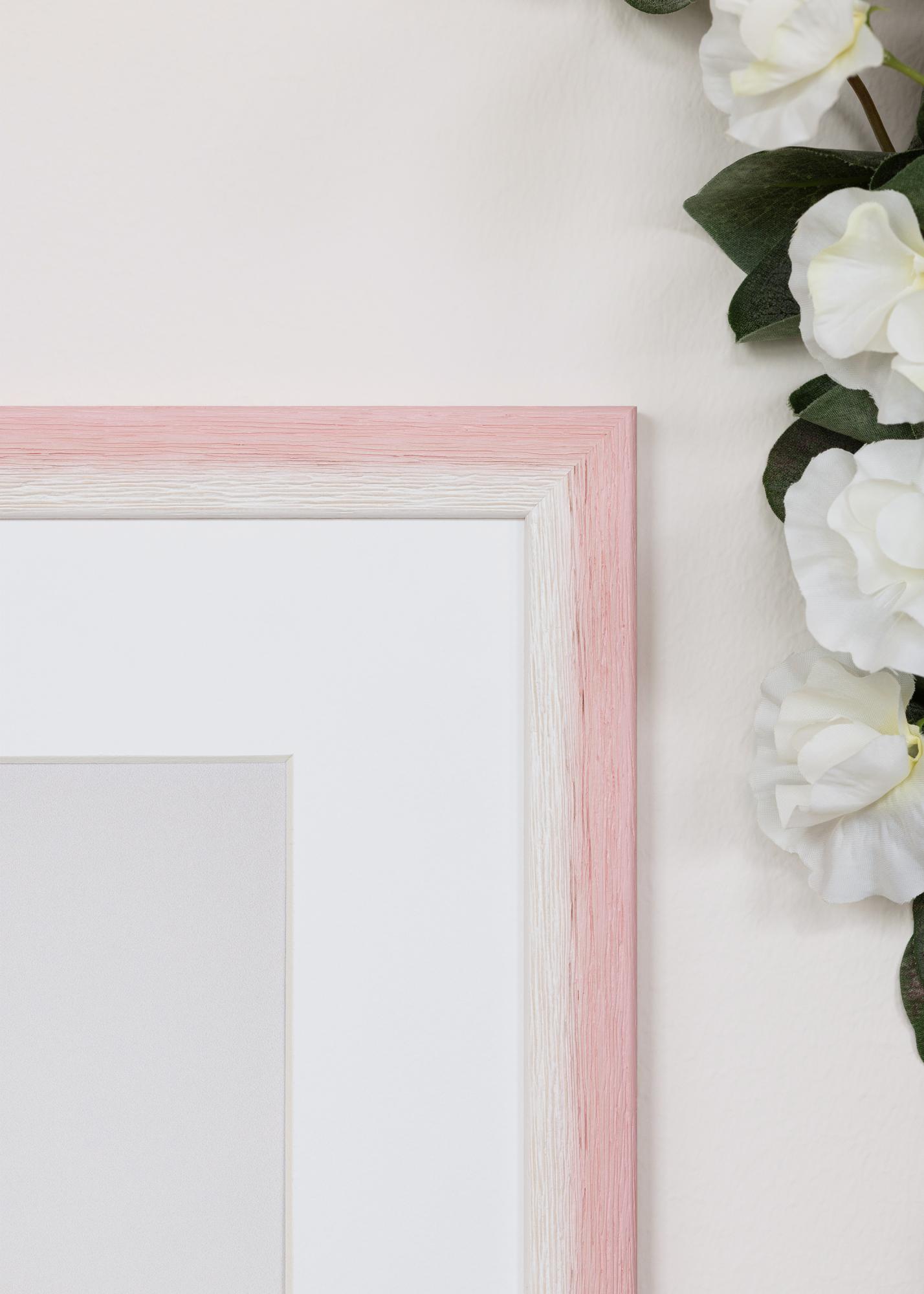 Denne fotorammen i størrelsen 40x50 cm er en perfekt kombinasjon av moderne design og klassisk eleganse. Med sin myke lyserosa tone og subtile hvitlaserte trestruktur gir den et stilrent og minimalistisk uttrykk som lar motivet ditt stå i sentrum. Den smale profilen på 23 mm og en dybde på 13 mm gjør at Rammen passer utmerket både i moderne og skandinaviske interiørstiler.