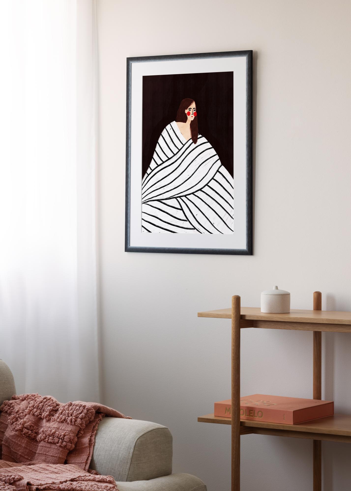 Rammen er laget av tre og har en matt finish som gir et sofistikert inntrykk. Den 23 mm brede ramlisten og det 13 mm dype formatet skaper en harmonisk følelse som passer godt i både moderne og skandinaviske interiørstiler. Den smale profilen gir et stilrent og avdempet uttrykk, slik at motivet får stå i sentrum.