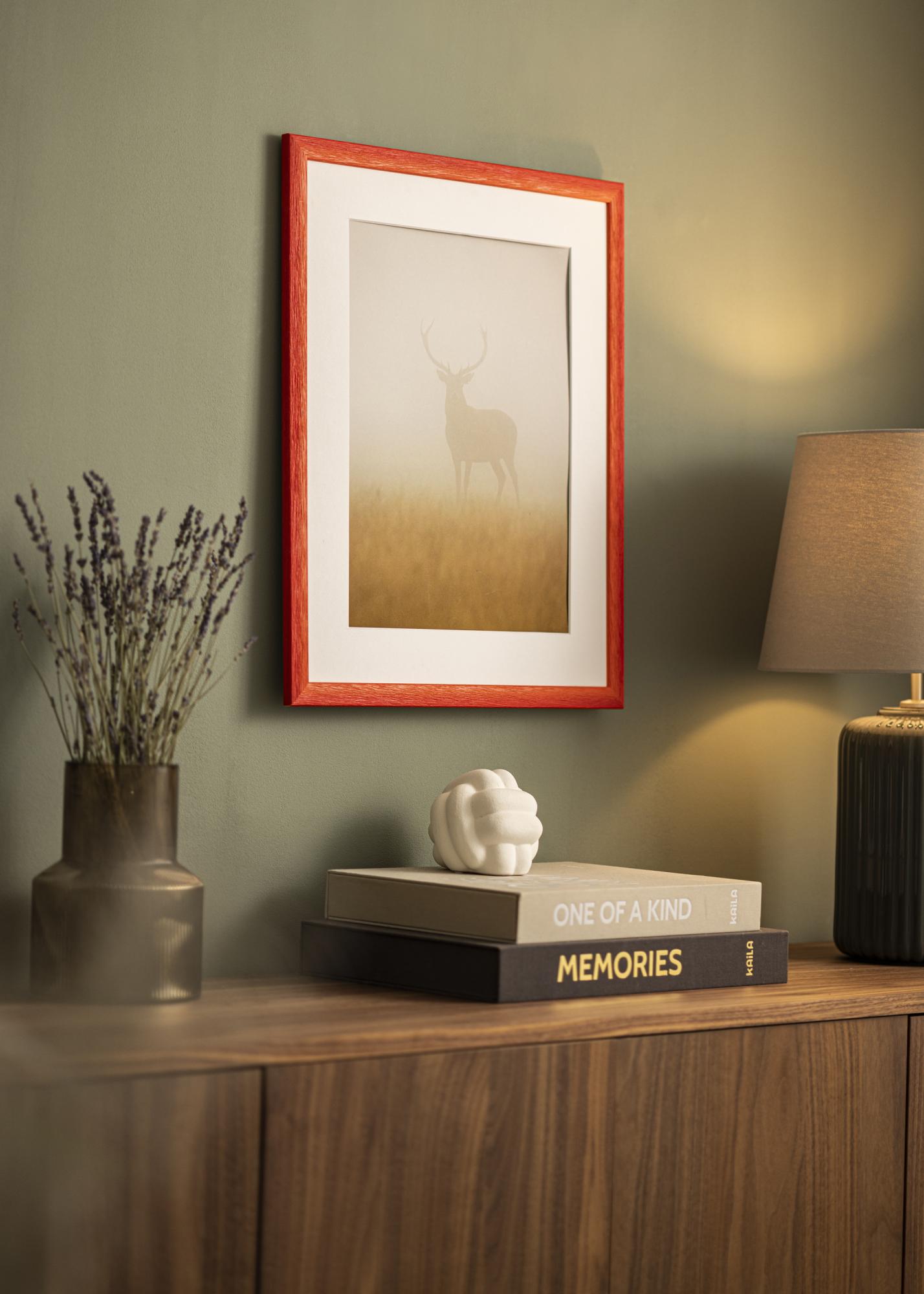 Vår måltilpassede bilderamme Cornwall Rød er en perfekt løsning for deg som søker en unik og personlig innramming. Med sin intense røde farge og varme undertoner blir denne fotorammen et iøynefallende innslag i ditt hjem. Den subtile skiftningen i fargen gir et levende uttrykk som fanger øyet.
