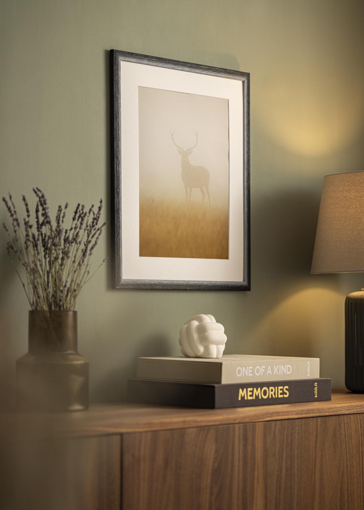 Vår måltilpassede bilderamme Cornwall Svart er det perfekte valget for deg som søker en elegant og dynamisk innramming. Med en stilren fargeovergang fra lys grå til dyp svart, tilbyr denne fotorammen et sofistikert uttrykk som passer i de fleste miljøer. Den fremtredende trestrukturen med tydelige årer gir en rustikk følelse og forsterker materialets naturlige karakter.