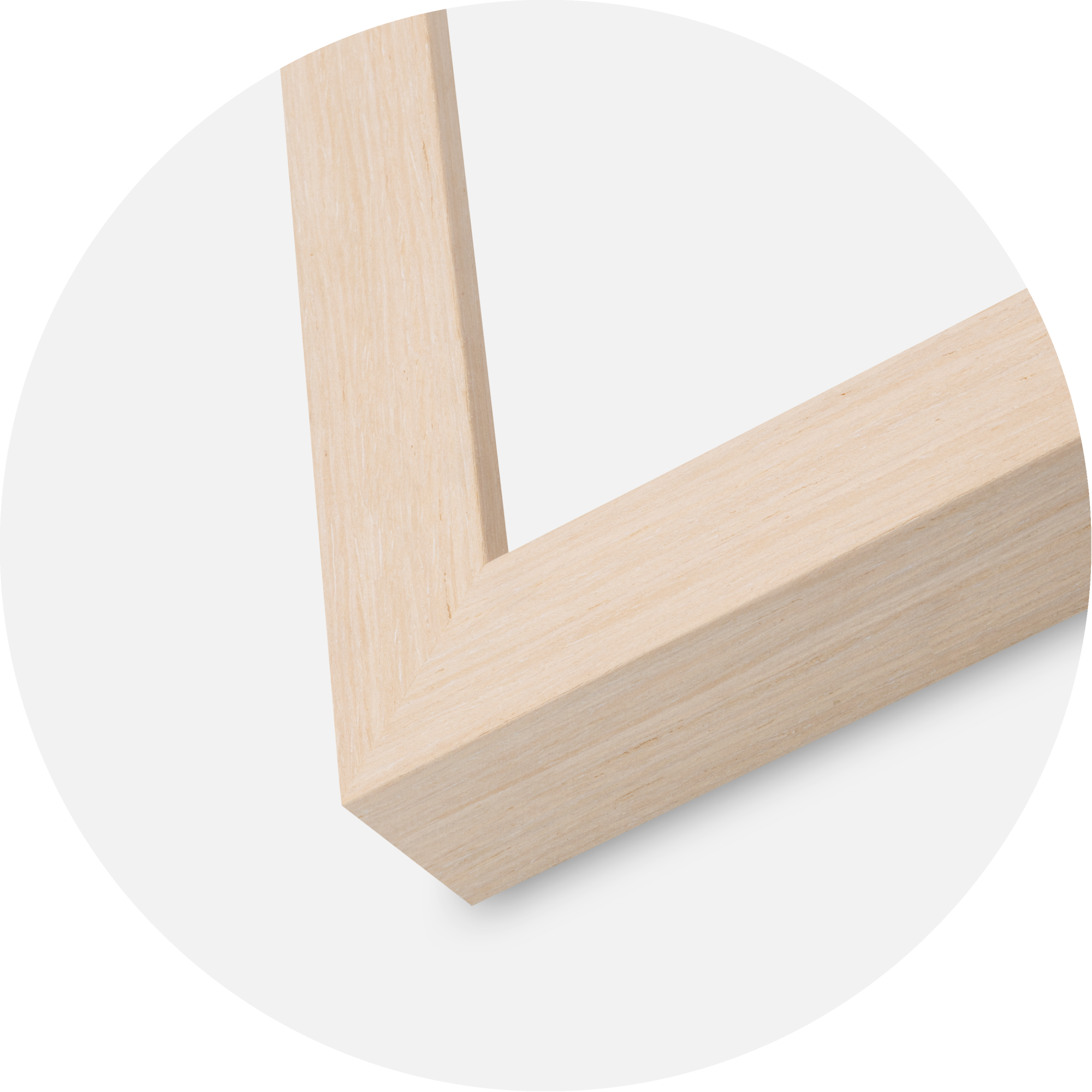 Den smale profilen gir et stilrent og avdempet uttrykk, slik at motivet virkelig står i sentrum. De presise hjørnene og den jevne finishen skaper en harmonisk følelse som passer utmerket i både skandinaviske og minimalistiske hjem. Kombinasjonen av den lyse fargen og den naturlige karakteren gjør denne rammen til et tidløst innslag som løfter både fotografier og plakater.
