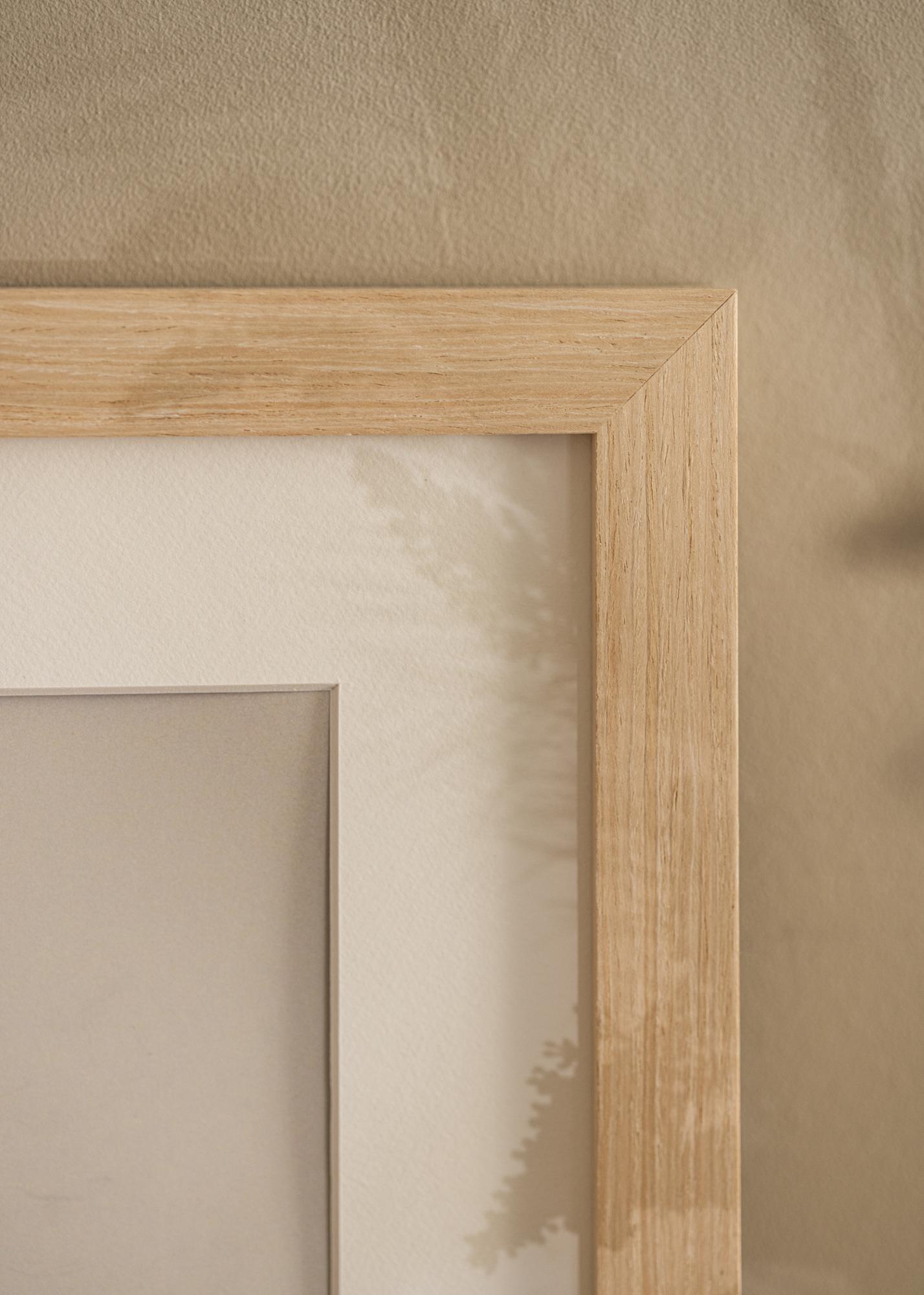 Rammen har en 28 mm bred rammeprofil og en dybde på 33 mm, som gir en stabil og robust følelse. Laget av furu, er denne bilderammen både holdbar og stilig. Overflaten har en matt silkeaktig finish som fremhever strukturen uten å reflektere lys, noe som gjør at dine bilder alltid står i fokus. Den rette profilen bidrar til et stilrent og harmonisk uttrykk.