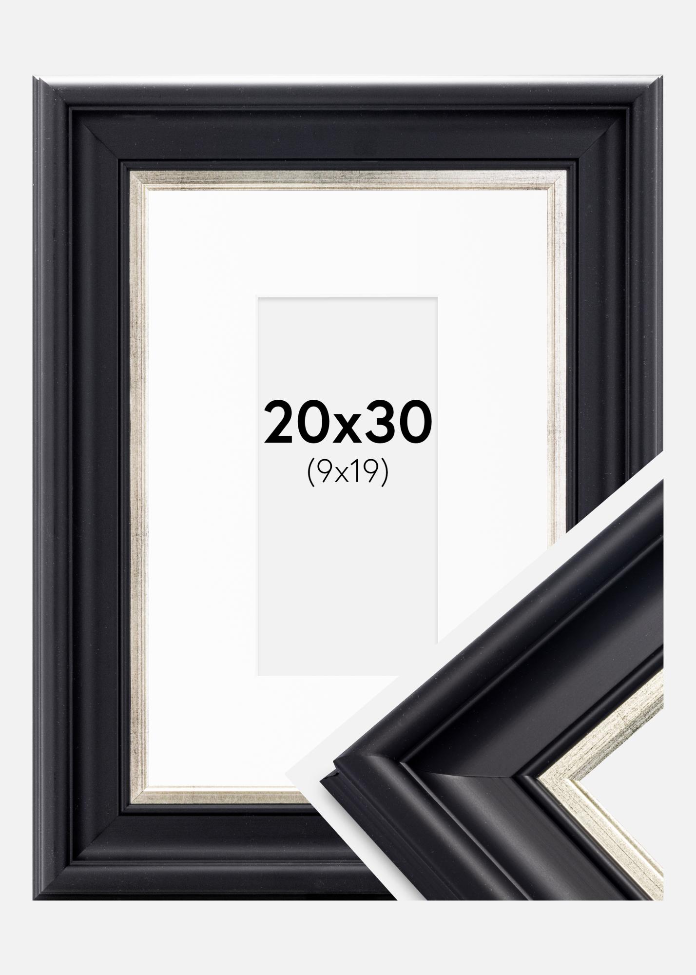 Ramme Dalarna Svart-Sølv 20x30 cm - Passepartout Hvit 10x20 cm