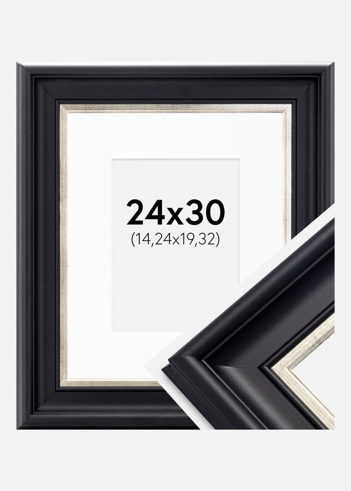 Ramme Dalarna Svart-Sølv 24x30 cm - Passepartout Hvit 6x8 inches