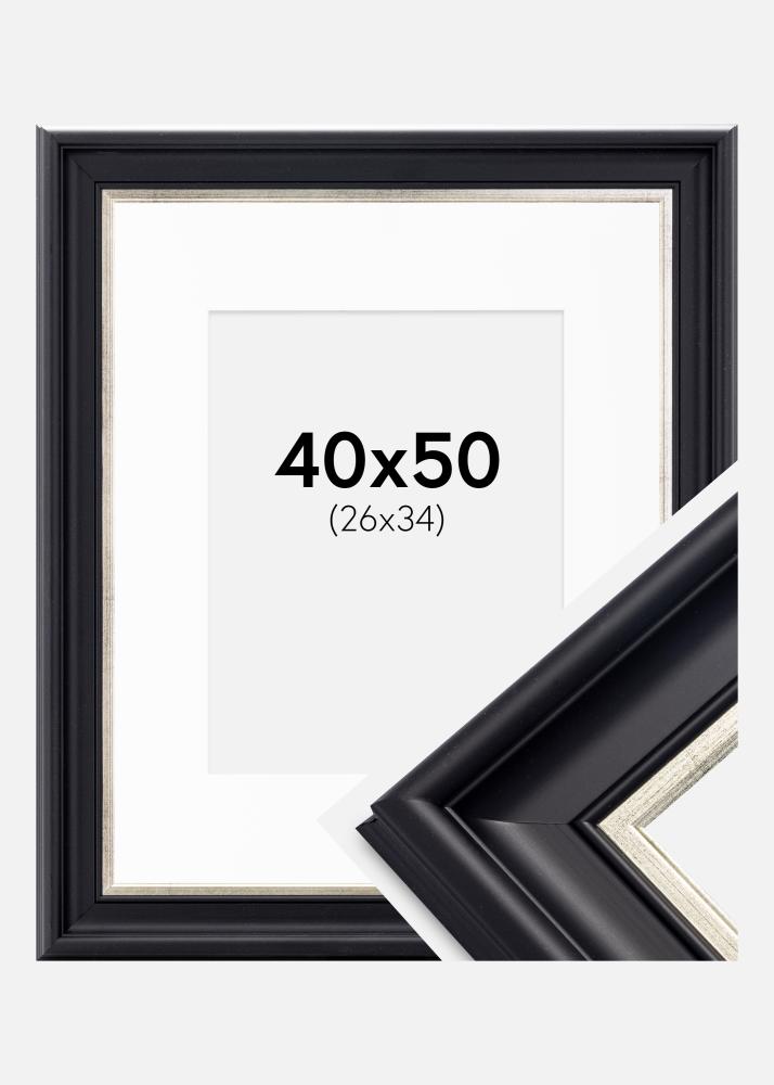 Ramme Dalarna Svart-Sølv 40x50 cm - Passepartout Hvit 27x35 cm