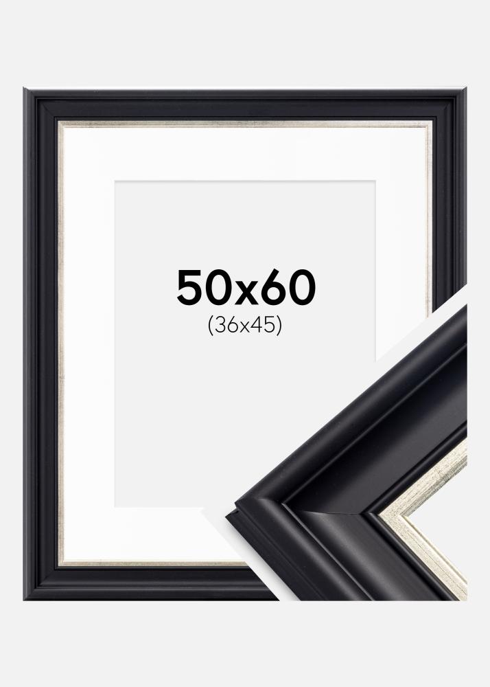 Ramme Dalarna Svart-Sølv 50x60 cm - Passepartout Hvit 37x46 cm