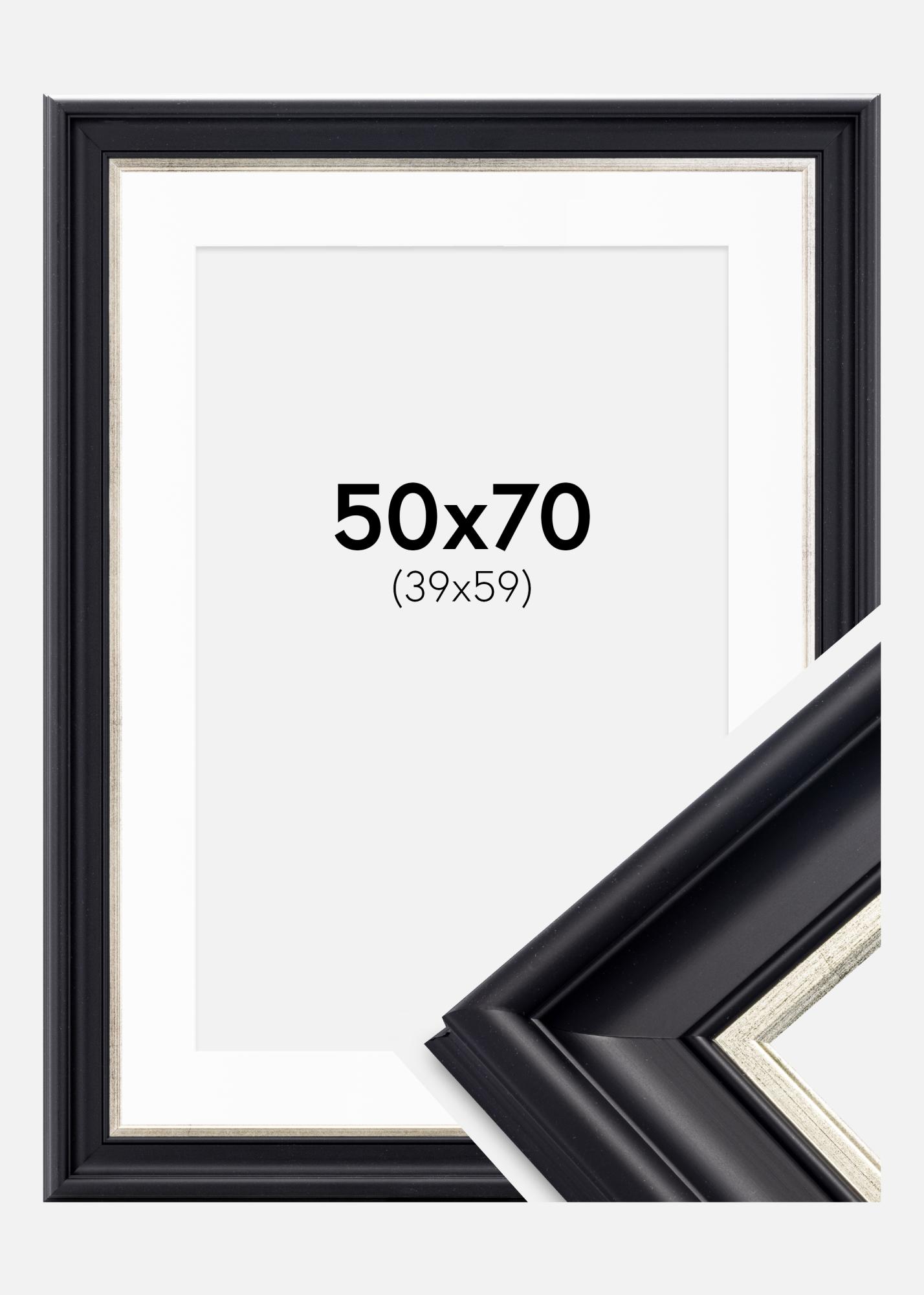 Ramme Dalarna Svart-Sølv 50x70 cm - Passepartout Hvit 40x60 cm