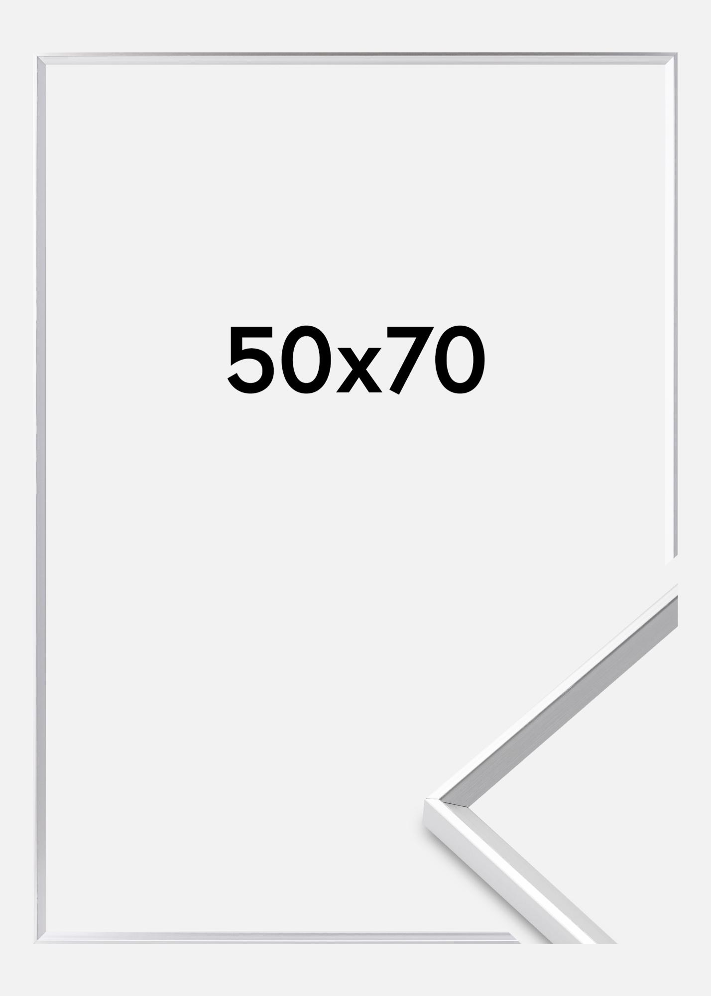 Gi veggene dine et touch av eleganse med vår sølvfargede bildeferamme i størrelsen 50x70 cm. Denne stilrene fotorammen kommer med en matt overflate som kompletterer alle typer interiørstiler. Den tynne rammen på bare 10 mm gir et diskret og sofistikert uttrykk, som gjør at bildene dine kommer i fokus.