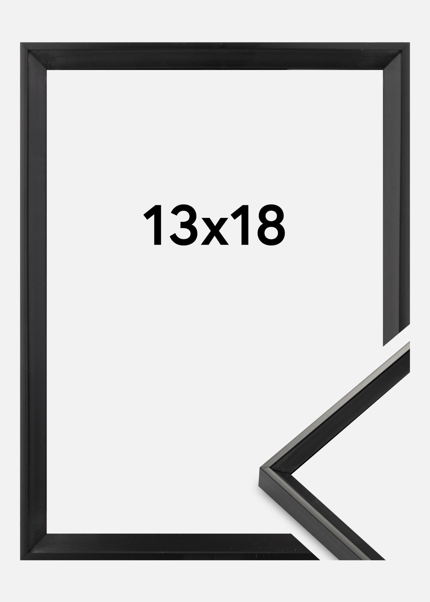 Dette er en svart bilderamme i moderne design med en stilig og matt rammelist som måler kun 10 mm i bredden. Rammelisten har i tillegg en kant med 45-graders vinkel som lener seg mot motivet og gir bildet ditt en trendy og elegant innramming. Den effektfulle innrammingen forsterkes ytterligere av listens dybde på 18 mm, som i tillegg gir rammen en solid følelse.