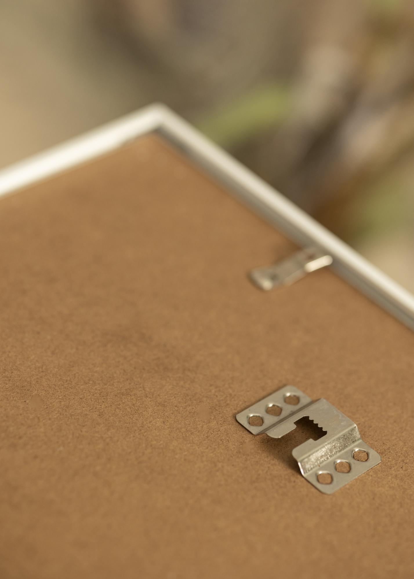 Pakke med bilderamme og passende hvit passepartout. På produktbildet ser du rammens mål (skrevet med fet skrift) og passepartoutens innvendige mål (skrevet i parentes). Merk at passepartoutens innvendige mål alltid må være 1 cm mindre enn ønsket bildestørrelse.
