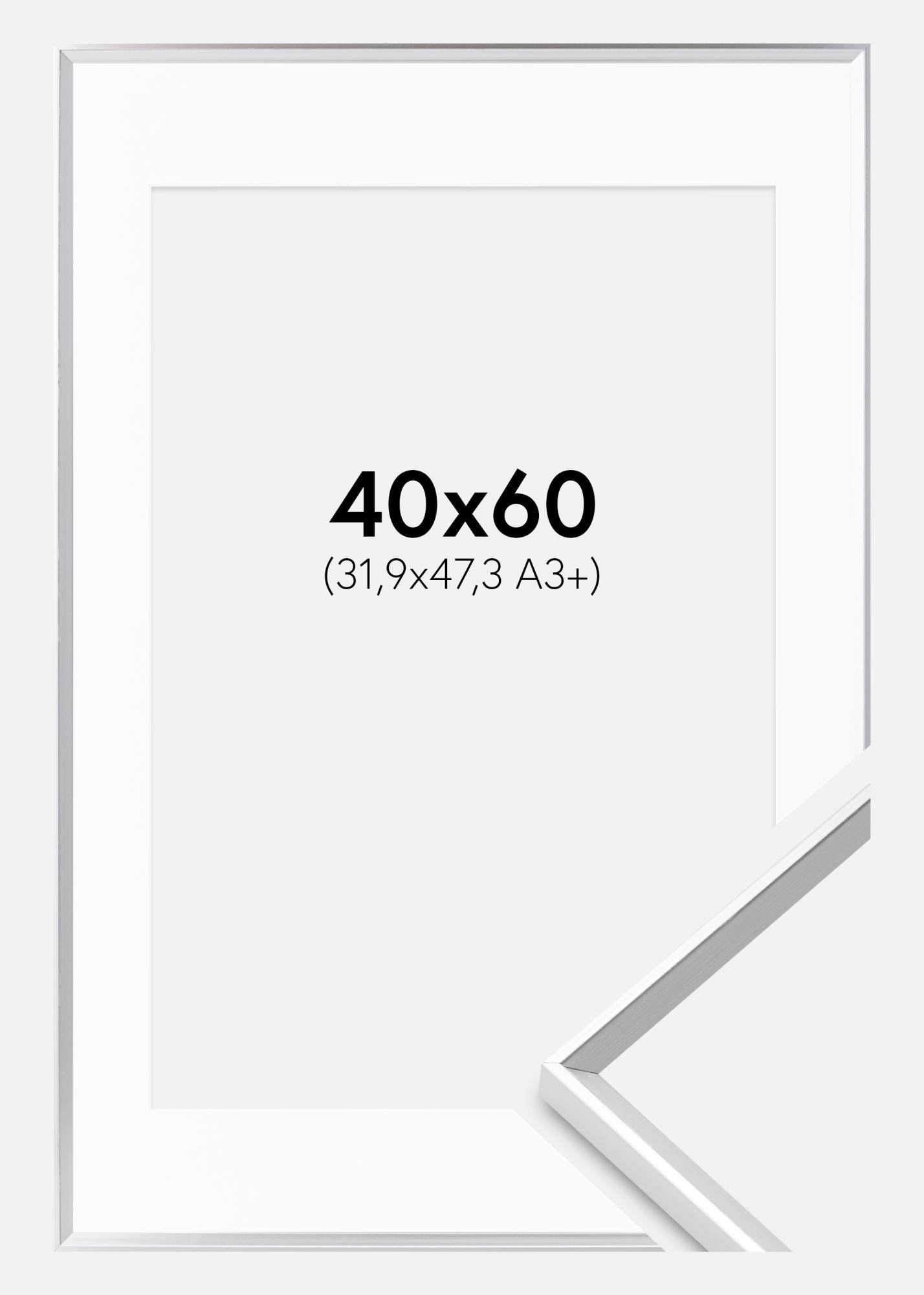 Ramme Desire Sølv 40x60 cm - Passepartout Hvit 32,9x48,3 cm (A3+)