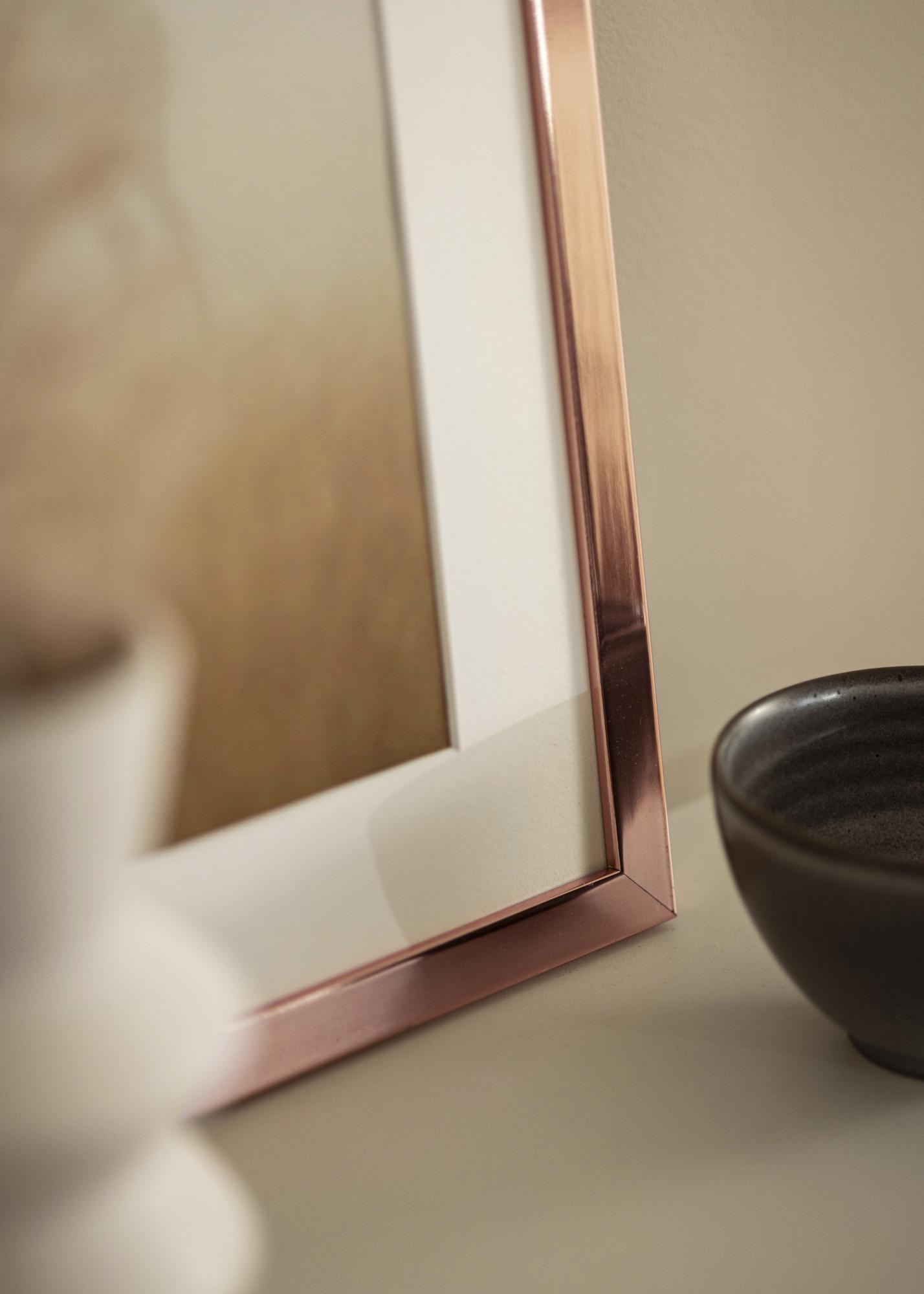 Den roségullfargede finishen gir en luksuriøs følelse og den metalliske overflaten har en myk glans som skaper subtile variasjoner i fargedybde avhengig av lysvinkelen. Dette gjør at rammen ikke bare komplementerer ditt foto, men også blir en del av innredningen i ditt hjem.