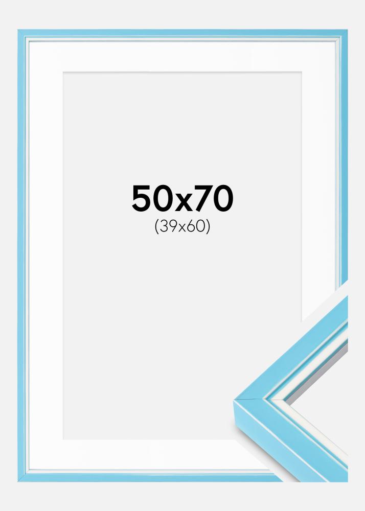 Oppsummert er denne blå rammen med hvit passepartout et utmerket valg for den som vil gi bildene sine en elegant og profesjonell innramming. Med sitt smarte design og kvalitetsmaterialer er den både praktisk og estetisk tiltalende.