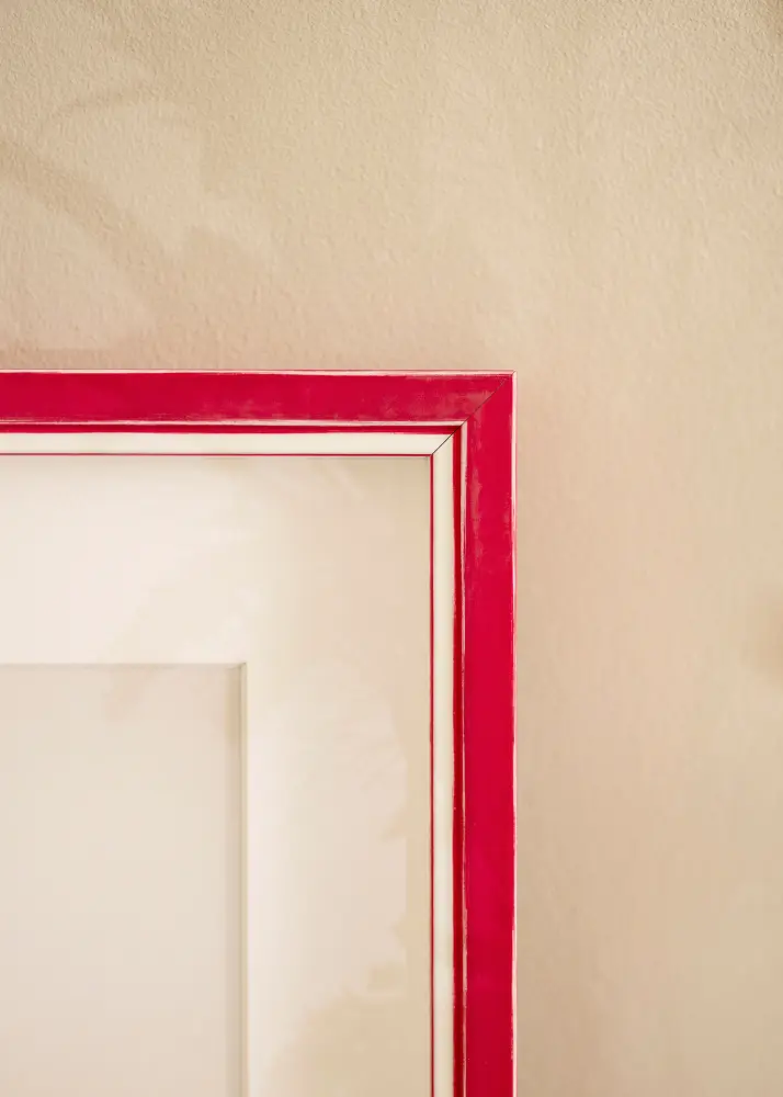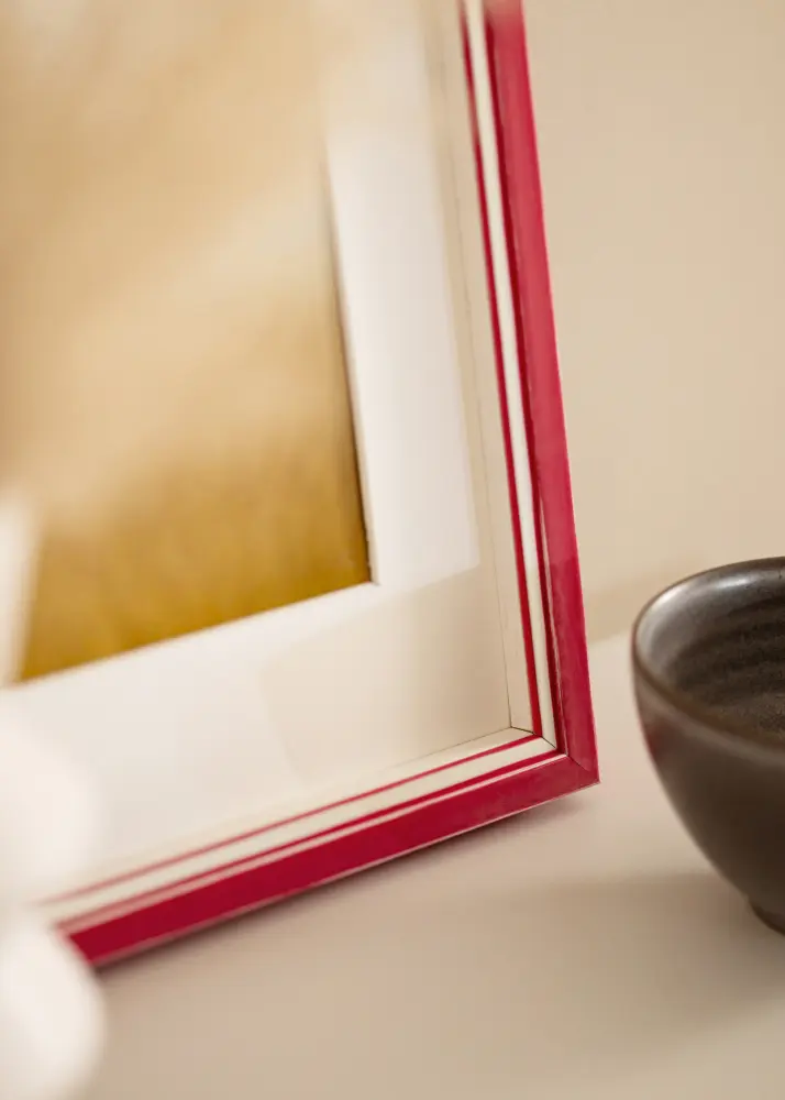 Fremhev dine favorittbilder med vår elegante røde ramme, komplett med en stilren hvit passepartout. Denne rammen er perfekt for å gi bildene dine i A4-format (21x29,7 cm) en ekstra touch av finesse og dybde.