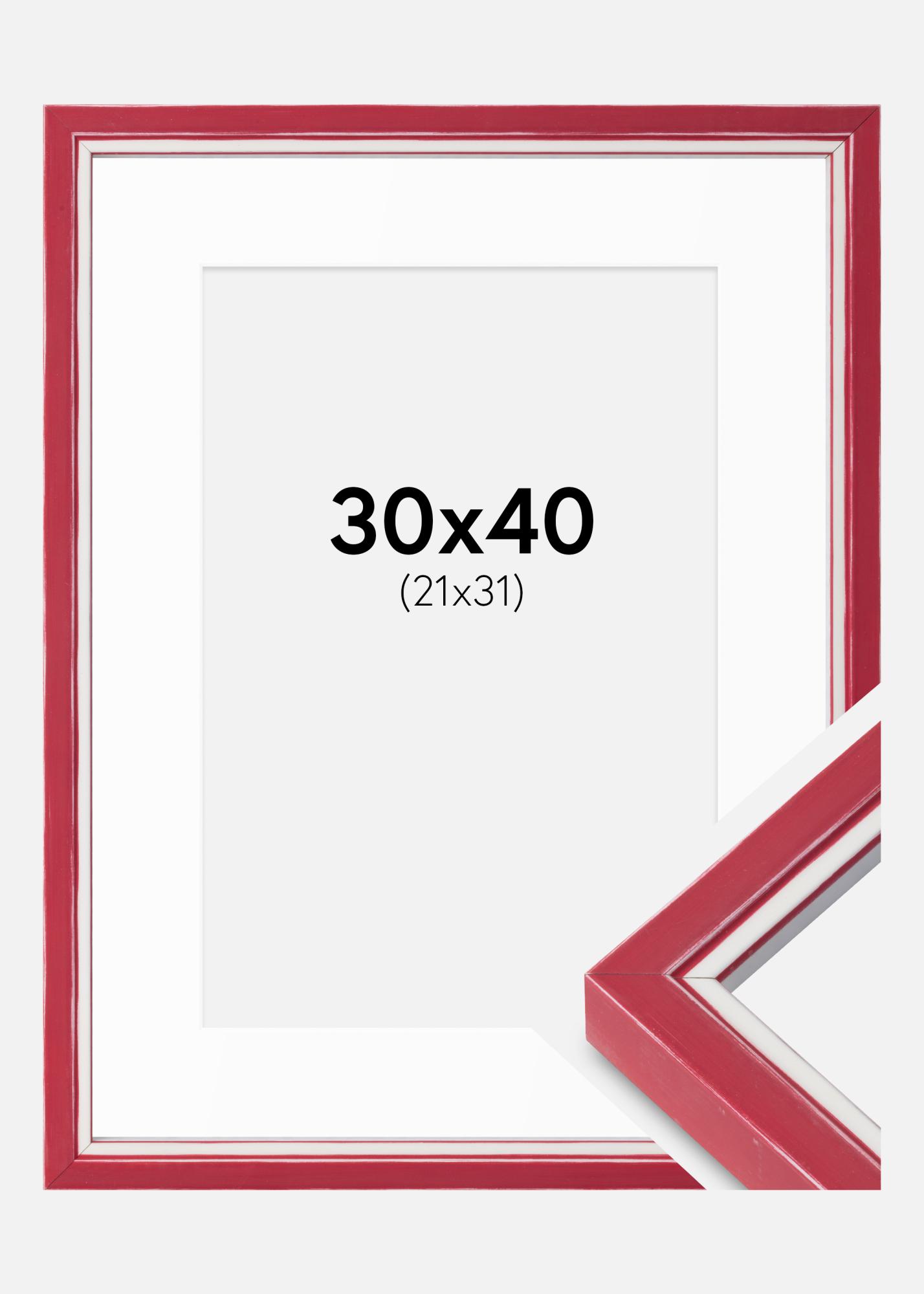 Ramme Diana Rød 30x40 cm - Passepartout Hvit 22x32 cm