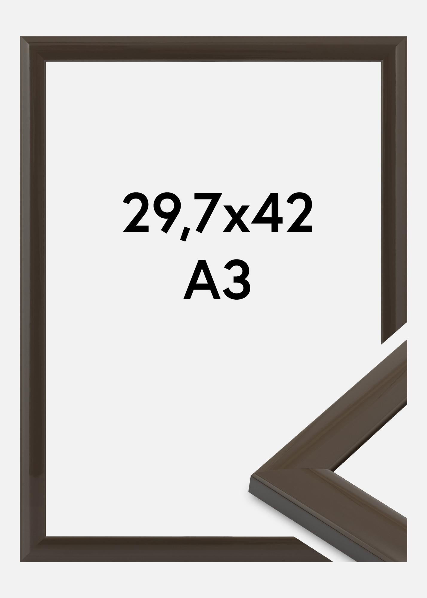 Denne stilrene Ramme i grått er perfekt for å fremheve dine favorittmotiver. Med en størrelse på 29,7x42 cm (A3) passer den utmerket til både fotografier og plakater. Den moderne designen med en glatt, blank overflate og en tynn profil gir et minimalistisk uttrykk som lar motivet stå i sentrum.
