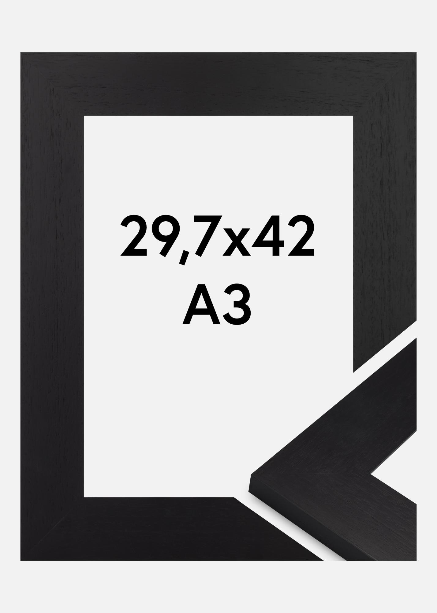 Denne elegante fotorammen er perfekt for å fremheve dine favorittmotiver i størrelsen 29,7x42 cm (A3). Med et moderne og stilrent design tilbyr den en glatt, matt overflate i en dyp Svart tone som gir et rent og grafisk uttrykk. Den smale profilen lar motivet stå helt i sentrum, mens de presise hjørnene og den jevne finishen skaper en sober følelse.