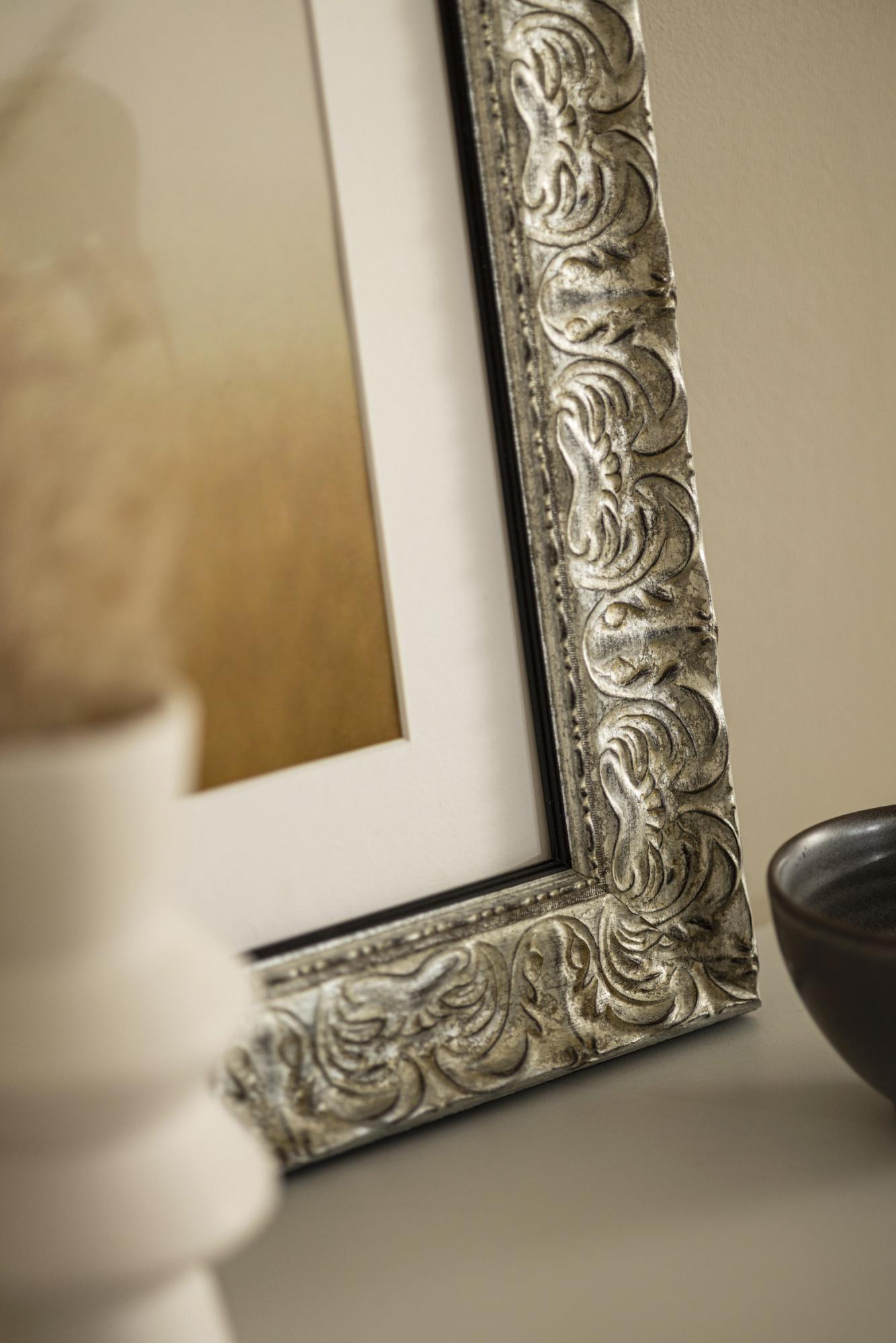 Ramme Durham Sølv er en elegant og stilfull fotoramme som gir bildene dine en sofistikert innramming. Med sin sølvfargede overflate og antikke finish skaper den en rustikk, men samtidig moderne følelse i hjemmet ditt. Den ornamenterte relieffen på rammens overflate bidrar til dens unike karakter og gjør den til et perfekt valg for å fremheve dine favorittfotografier eller kunstverk.