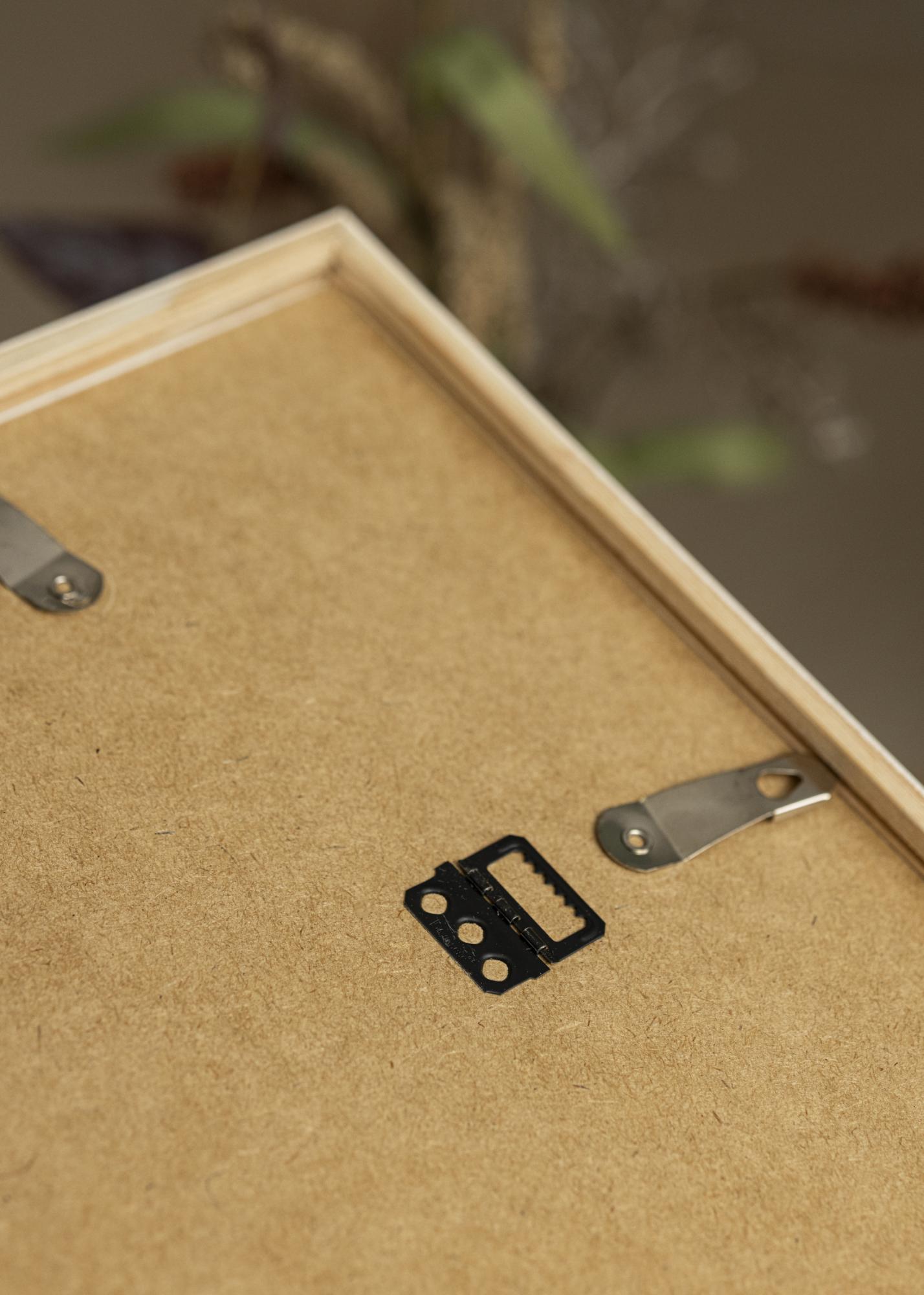 Den matte overflaten på rammen supplerer dens rene linjer og hvite farge, noe som gjør den til et perfekt valg for alle rom og interiørstiler. Rammen er ikke bare vakker å se på, men også praktisk med sine metallhengere på baksiden. Disse hengerne er designet slik at din ramme kan henges både horisontalt og vertikalt, noe som gir deg fleksibilitet når du dekorerer hjemmet ditt.