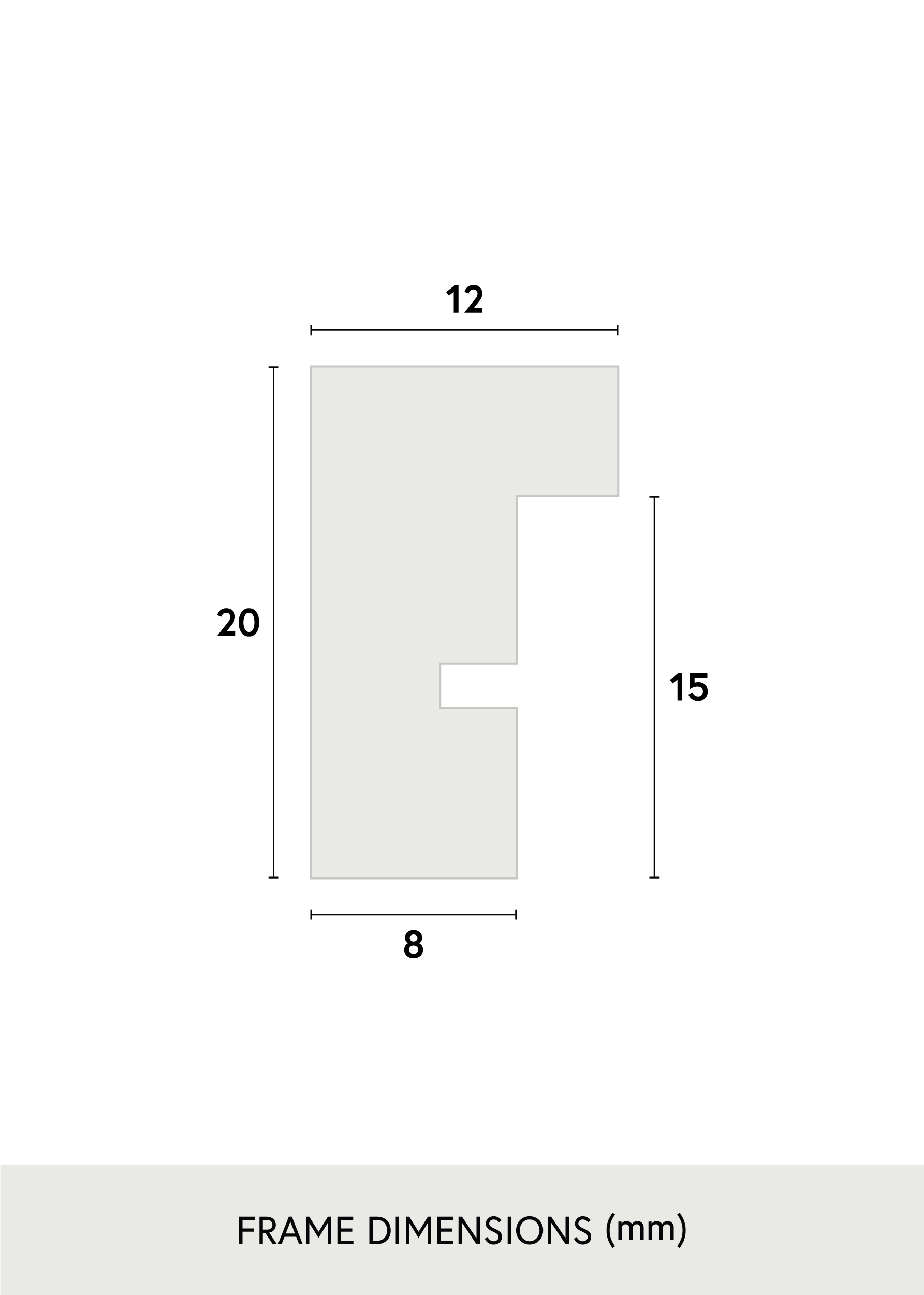 Pakke med bilderamme og passende svart passepartout. På produktbildet ser du rammens mål (skrevet med fet skrift) og passepartoutens innvendige mål (skrevet i parentes). Merk at passepartoutens innvendige mål alltid må være 1 cm mindre enn ønsket bildestørrelse.