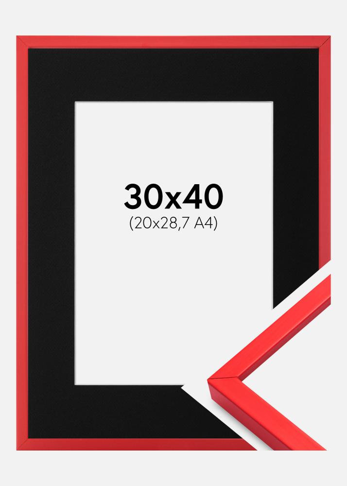 Ramme E-Line Rød 30x40 cm - Passepartout Svart 21x29,7 cm (A4)