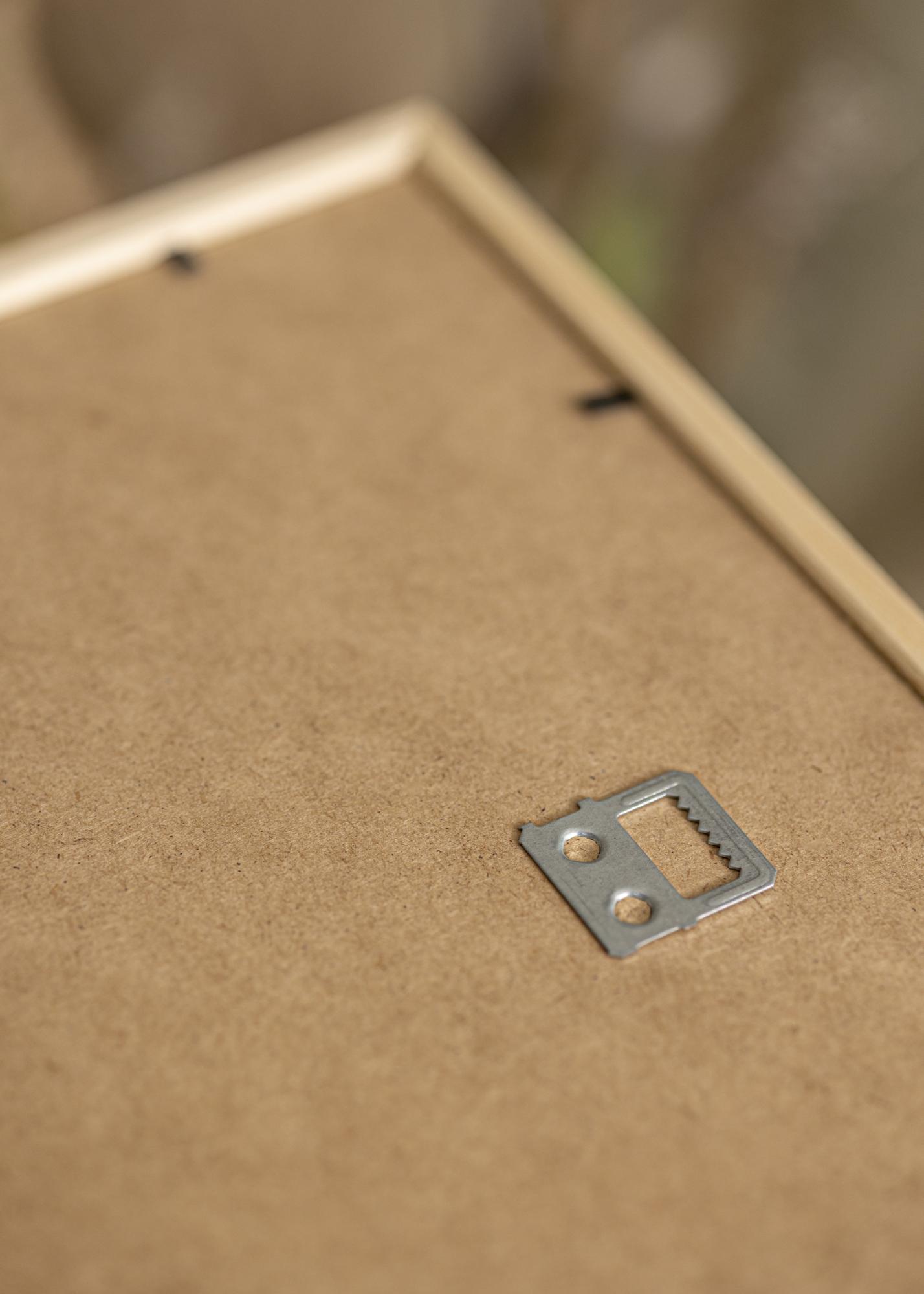 Rammen har akrylglass, som er en lett og uknuselig glassvariant med samme krystallklare skarphet som vanlig glass. På baksiden er det et bakstykke laget av MDF, som holdes på plass av små stifter. For å sette inn motivene dine i bilderammen kan du bøye opp stiftene og løsne bakstykket. Rammen kan henges opp både loddrett og vannrett på veggen, slik at du kan være fleksibel i valg av motiver.