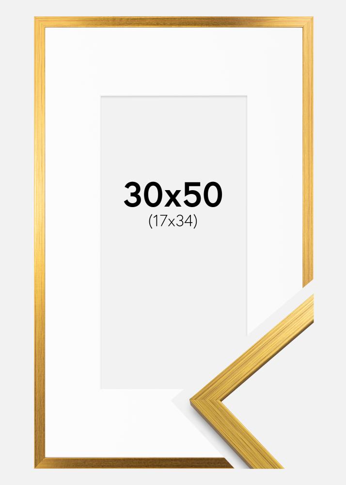 Ramme Edsbyn Gull 30x50 cm - Passepartout Hvit 18x35 cm
