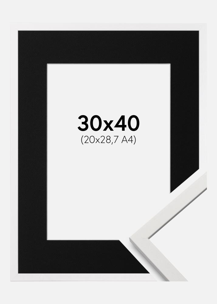 Ramme Edsbyn Hvit 30x40 cm - Passepartout Svart 21x29,7 cm (A4)