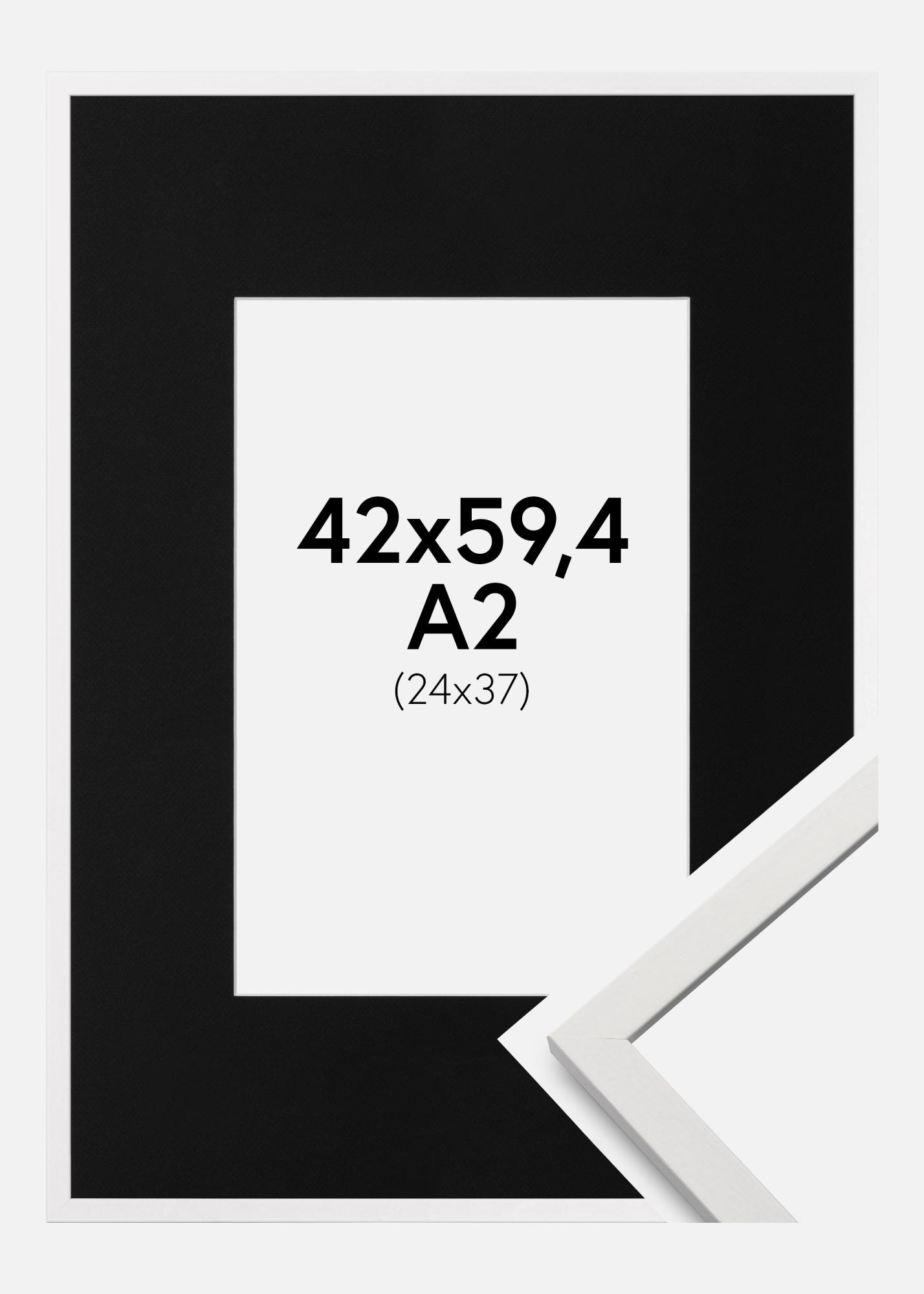 Ramme Edsbyn Hvit 42x59,4 cm (A2) - Passepartout Svart 25x38 cm