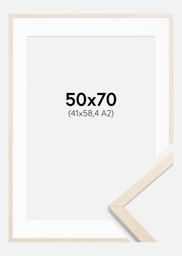 Ramme Edsbyn Lønn 50x70 cm - Passepartout Hvit 42x59,4 cm (A2)