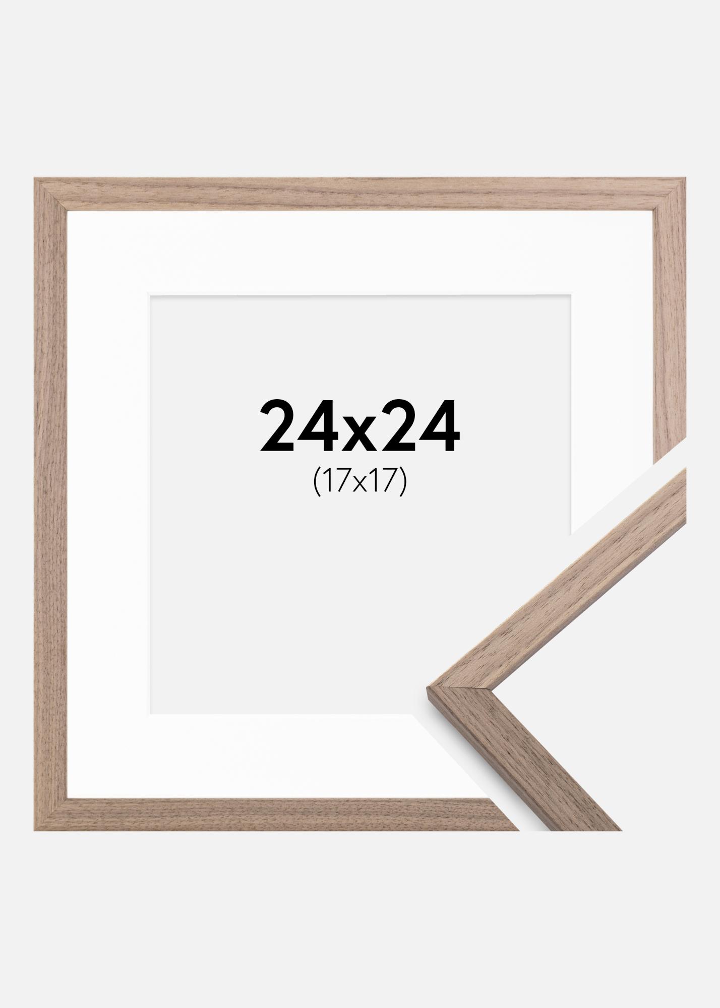 Ramme Edsbyn Lys Valnøtt 24x24 cm - Passepartout Hvit 18x18 cm