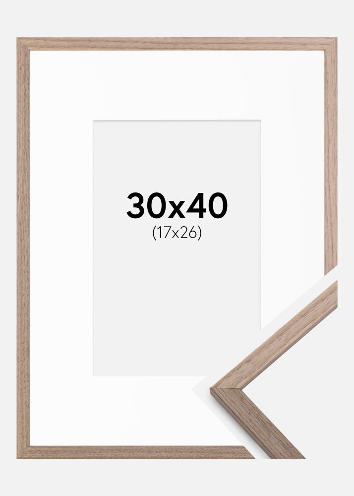 Ramme Edsbyn Lys Valnøtt 30x40 cm - Passepartout Hvit 18x27 cm