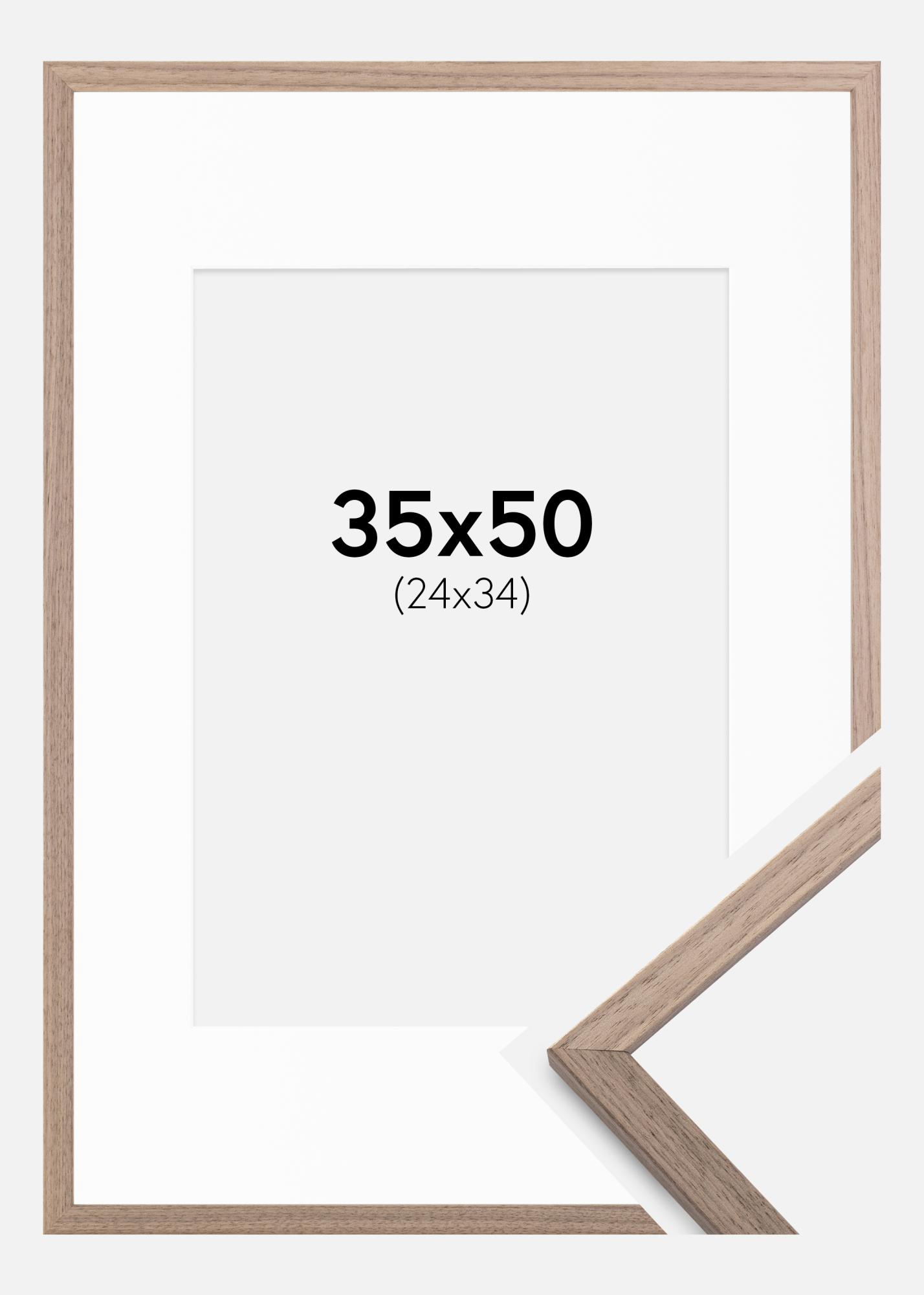 Ramme Edsbyn Lys Valnøtt 35x50 cm - Passepartout Hvit 25x35 cm