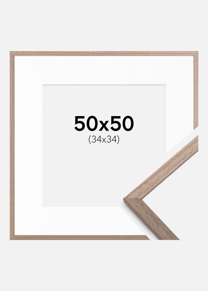 Ramme Edsbyn Lys Valnøtt 50x50 cm - Passepartout Hvit 35x35 cm