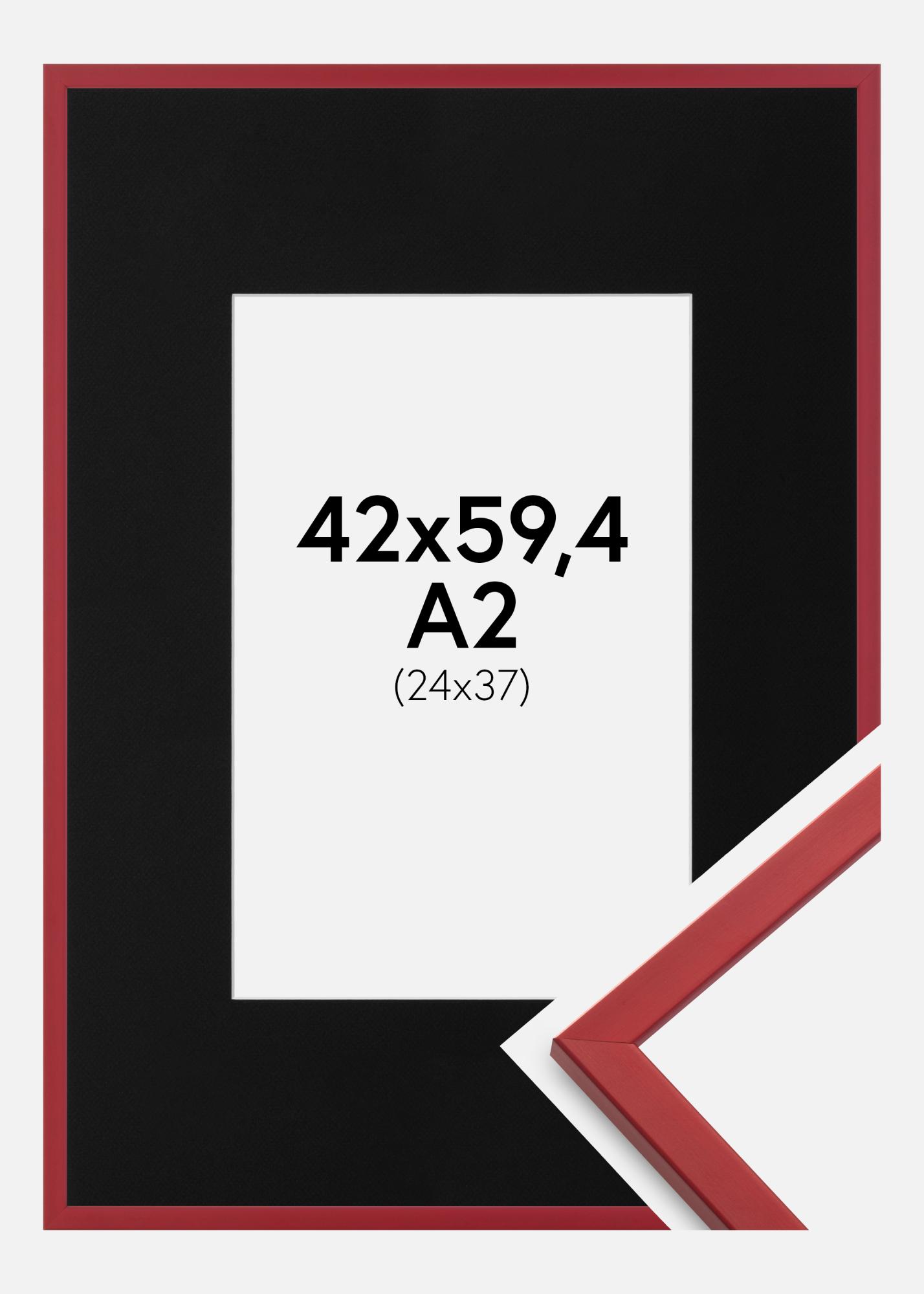 Ramme Edsbyn Rød 42x59,4 cm (A2) - Passepartout Svart 25x38 cm
