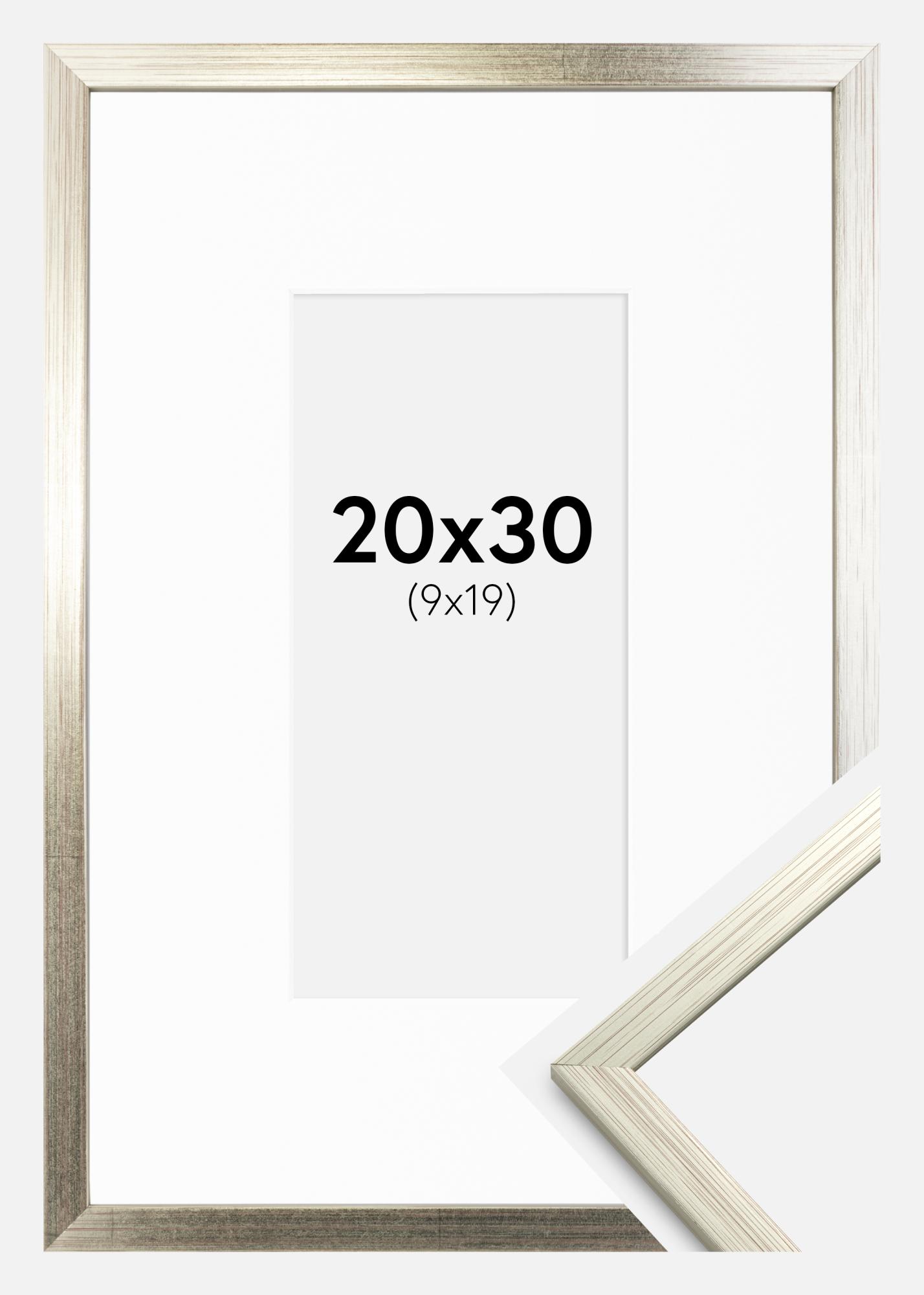 Ramme Edsbyn Sølv 20x30 cm - Passepartout Hvit 10x20 cm