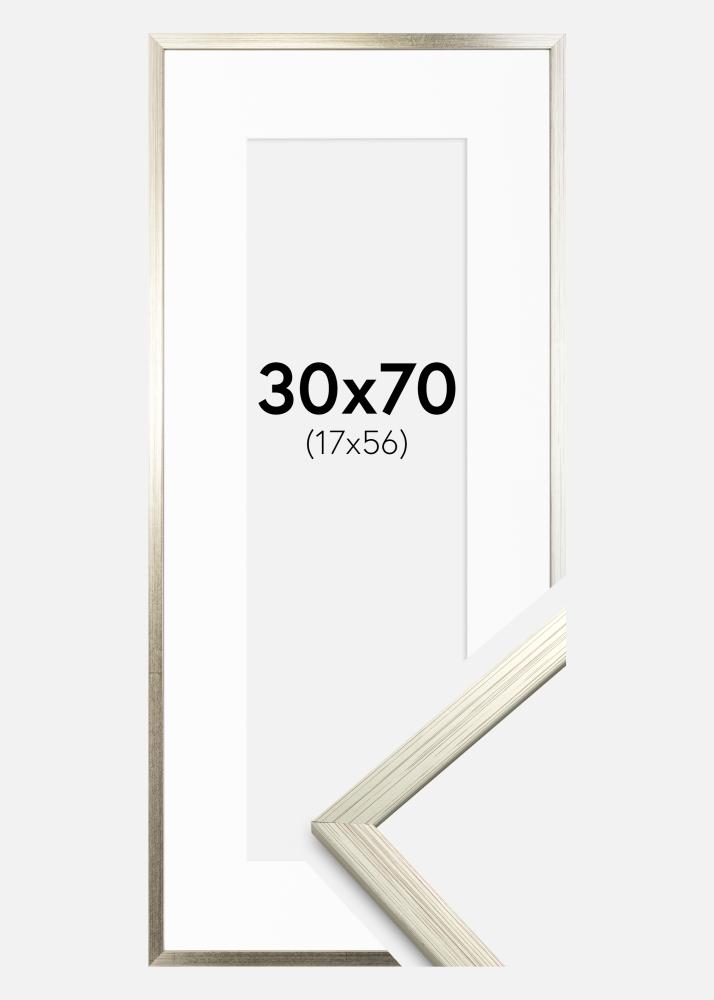 Ramme Edsbyn Sølv 30x70 cm - Passepartout Hvit 18x57 cm