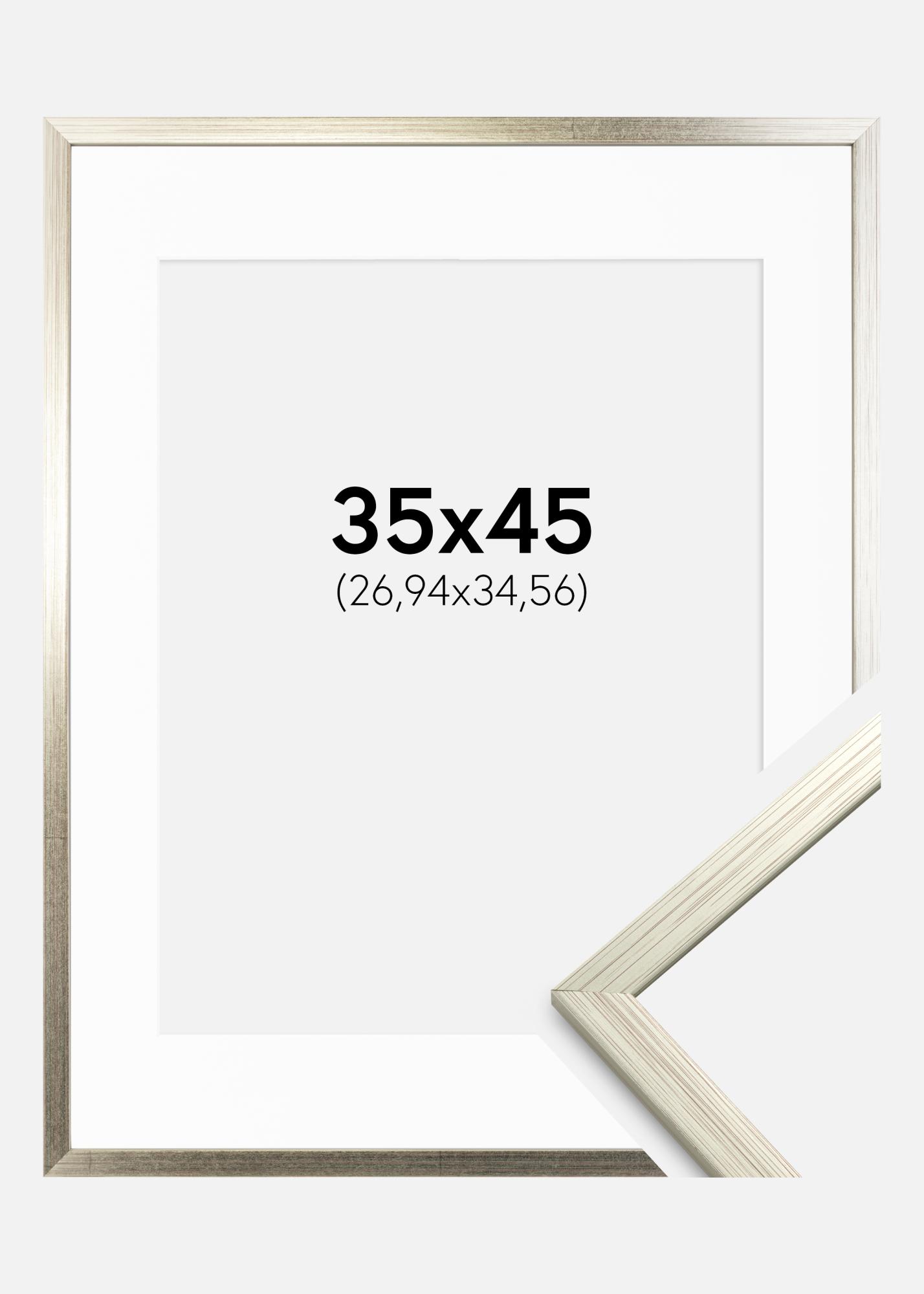 Ramme Edsbyn Sølv 35x45 cm - Passepartout Hvit 11x14 inches