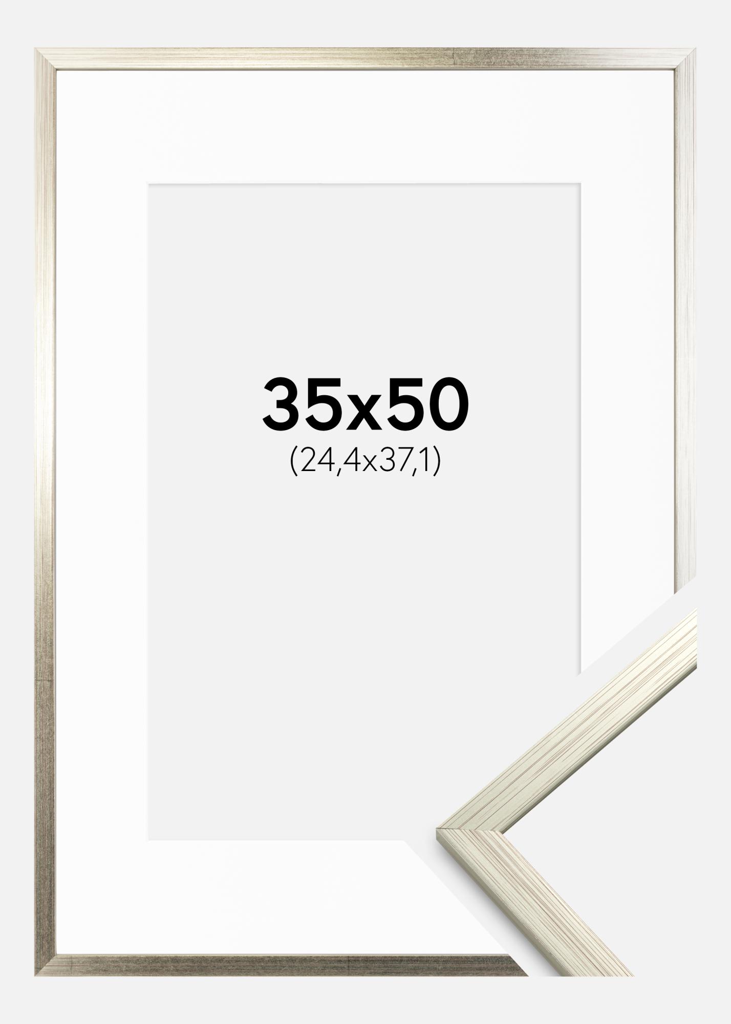 Ramme Edsbyn Sølv 35x50 cm - Passepartout Hvit 10x15 inches