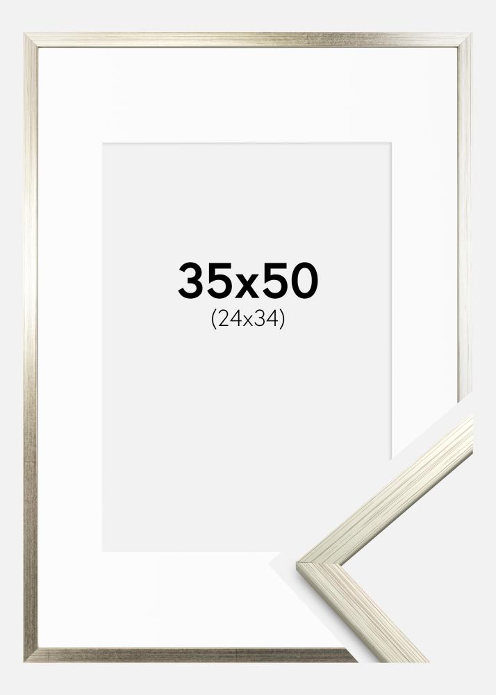 Ramme Edsbyn Sølv 35x50 cm - Passepartout Hvit 25x35 cm