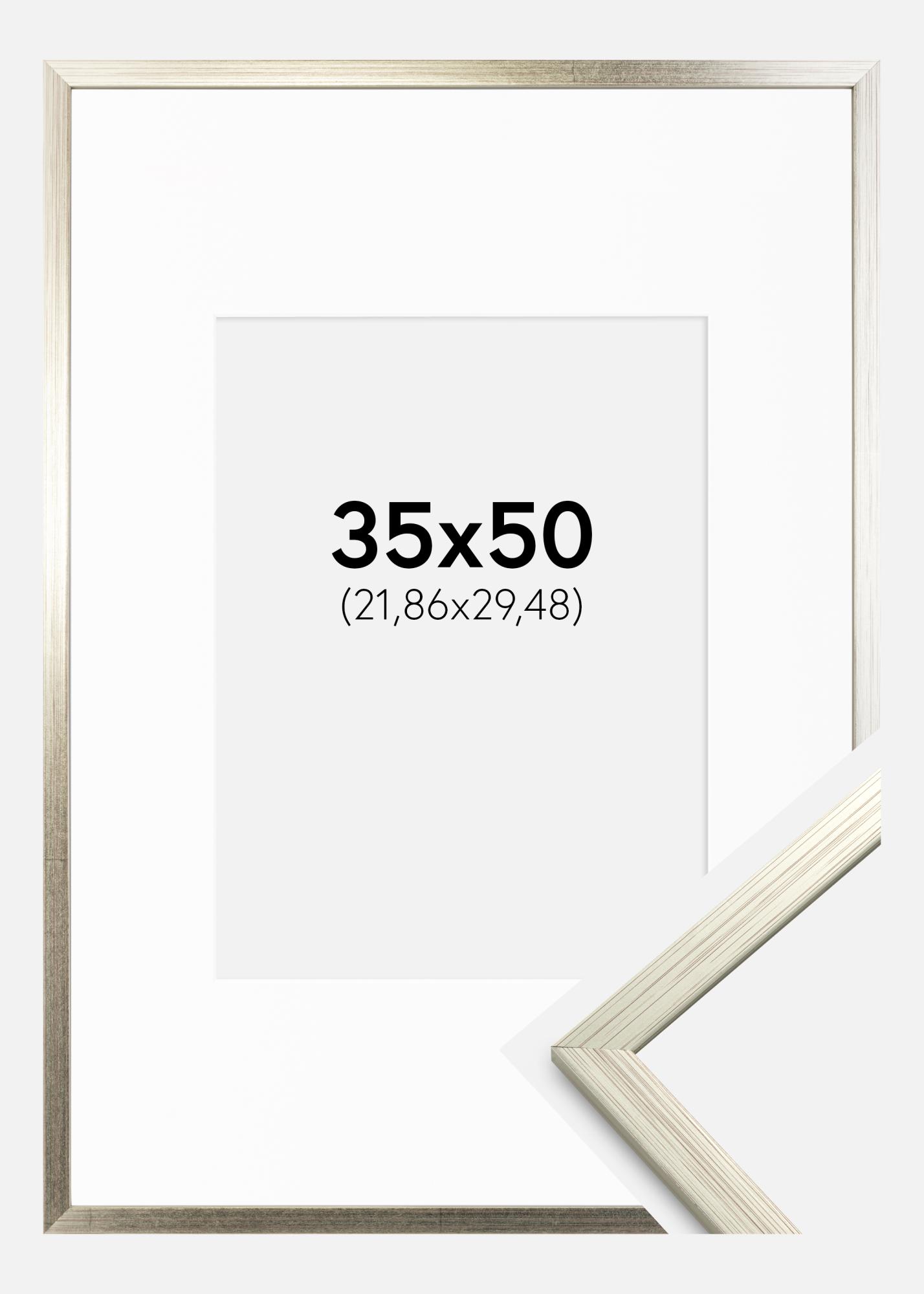 Ramme Edsbyn Sølv 35x50 cm - Passepartout Hvit 9x12 inches