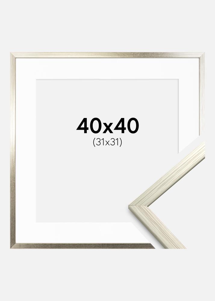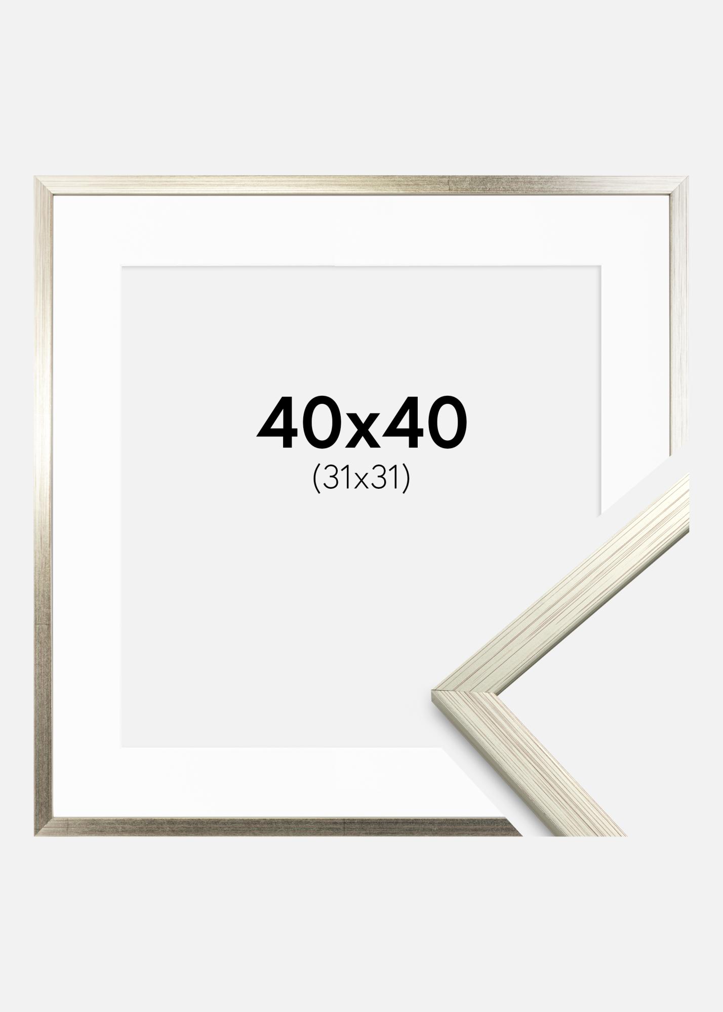 Ramme Edsbyn Sølv 40x40 cm - Passepartout Hvit 32x32 cm