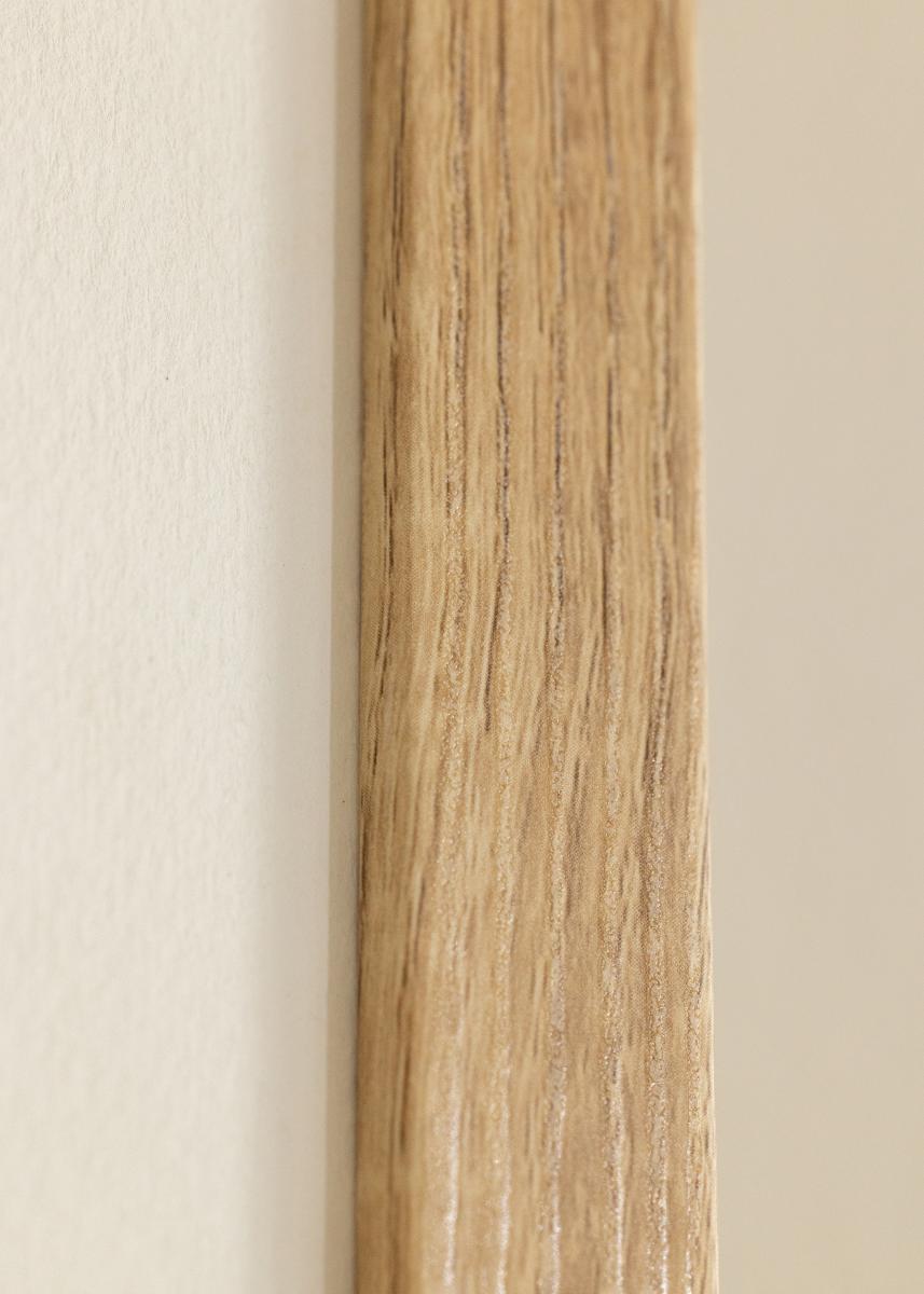 Dette er en flott ramme med eiketrefarge og foliert overflate med tydelig trestruktur. Den naturnære fargen gjør at rammen passer utmerket til mange forskjellige typer motiver, for eksempel svart-hvit fotokunst, minimalistiske plakater og posters med sitater. Rammen kan brukes til å henge opp bilder både loddrett og vannrett.