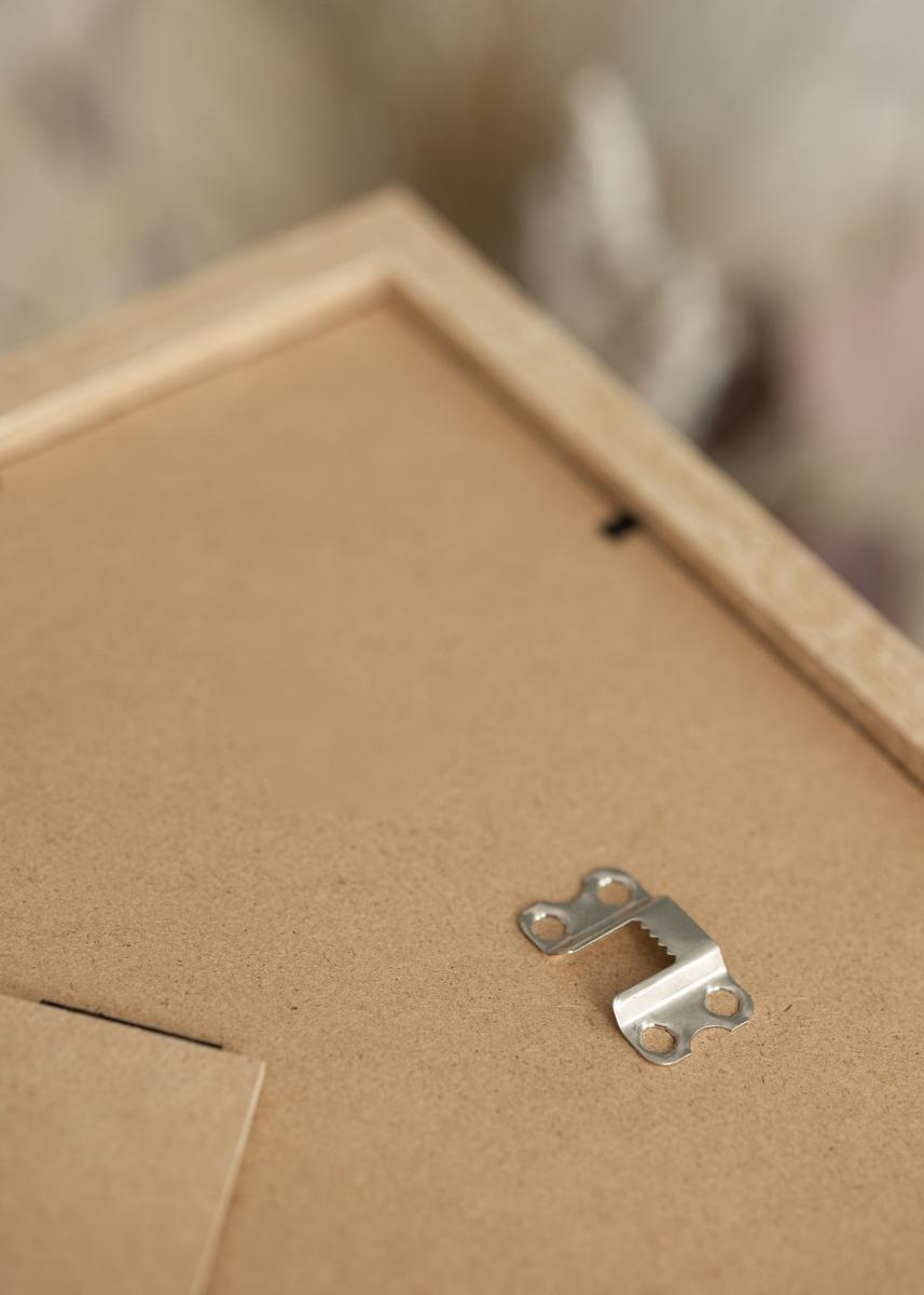 Denne rammen er laget av MDF-materiale med en rammelist som er både 20 mm dyp og 20 mm bred. Listens profil er lett innoverbuet, noe som gir et stilig uttrykk som retter fokus mot bildene i rammen. For å sette inn bildet, og eventuelt også en passepartout, bøyer du opp stiftene på baksiden og løsner den.