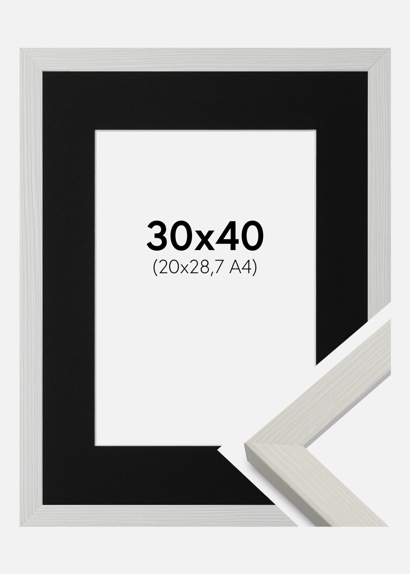 Ramme Fiorito Hvit 30x40 cm - Passepartout Svart 21x29,7 cm (A4)
