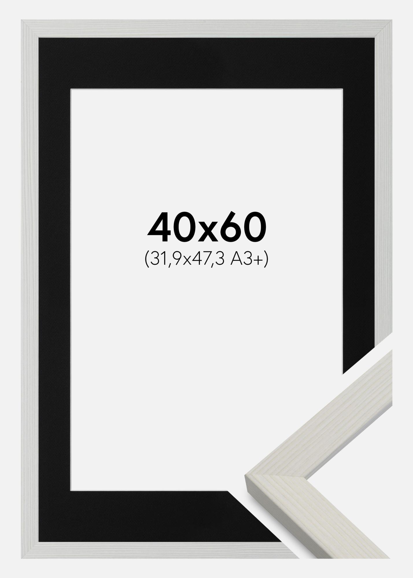 Ramme Fiorito Hvit 40x60 cm - Passepartout Svart 32,9x48,3 cm (A3+)