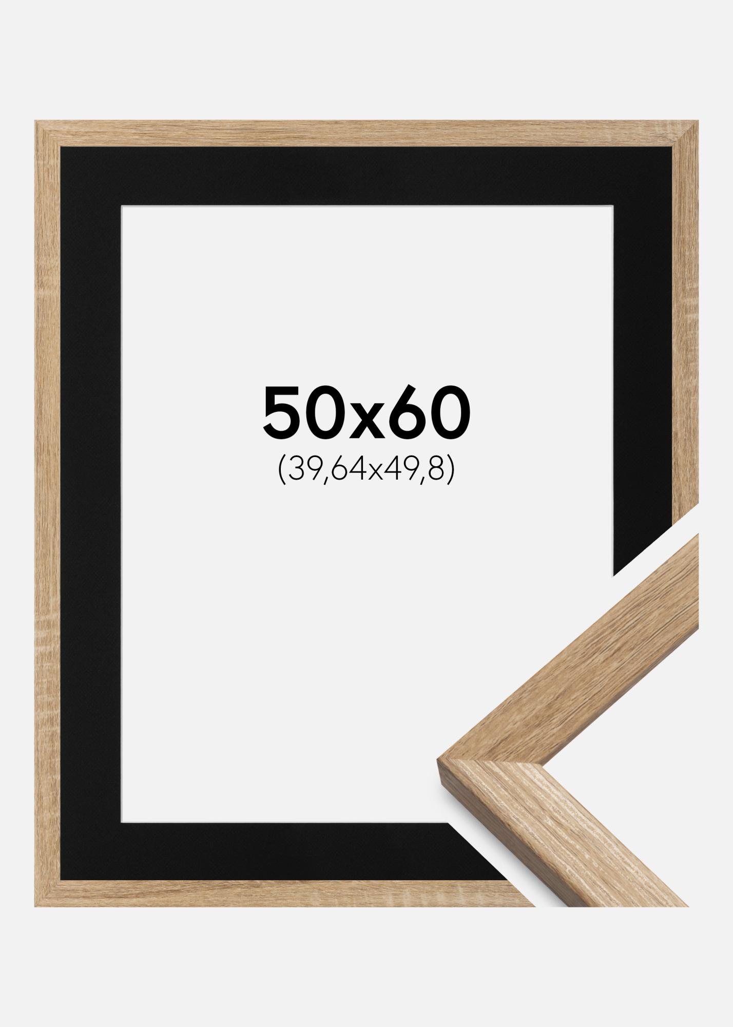 Pakke med bilderamme og passende svart passepartout. På produktbildet ser du rammens mål (skrevet med fet skrift) og passepartoutens innvendige mål (skrevet i parentes). Merk at passepartoutens innvendige mål alltid må være 1 cm mindre enn ønsket bildestørrelse.