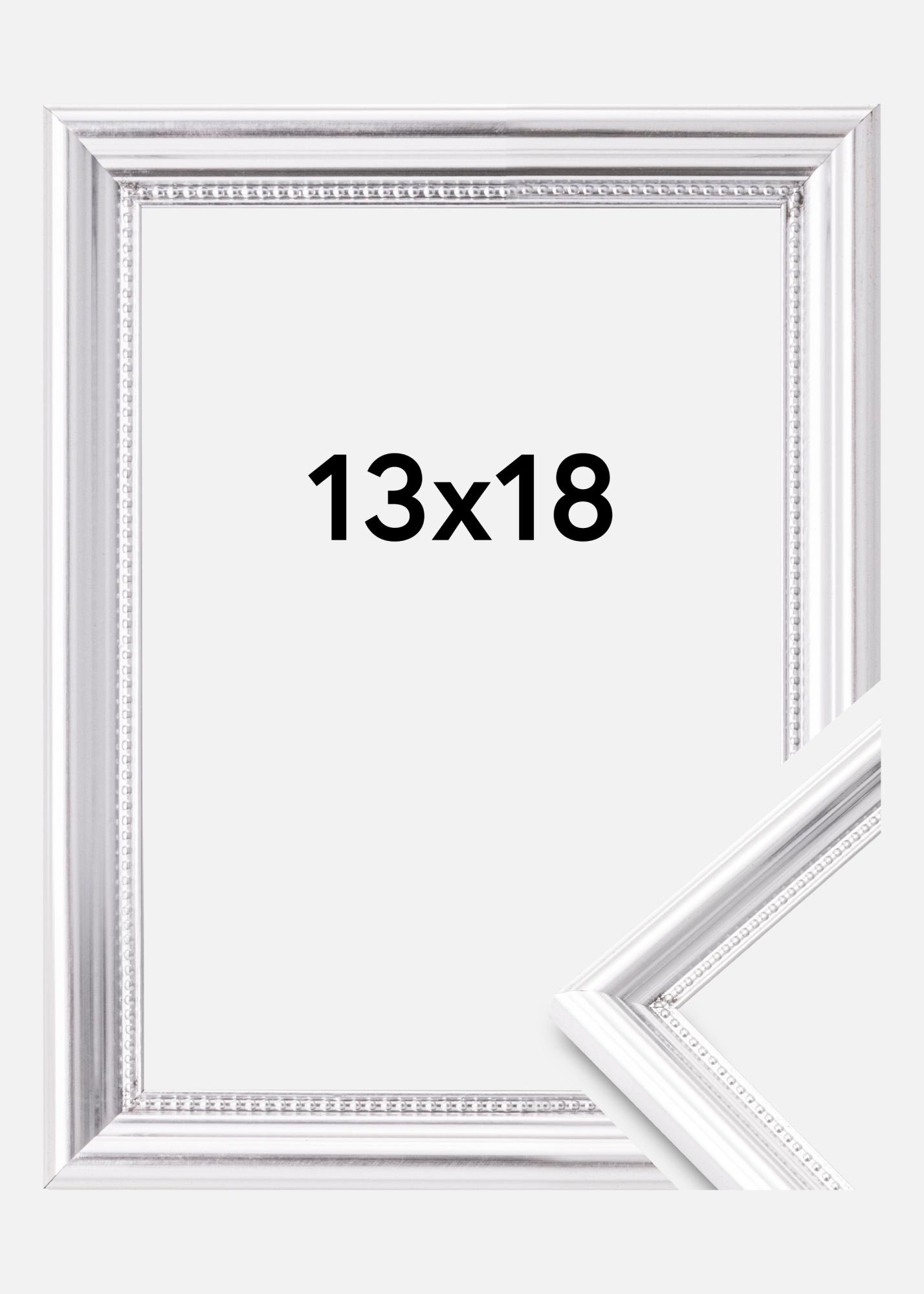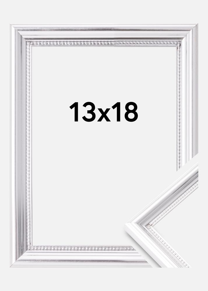 Gi dine minner den innrammingen de fortjener med denne elegante sølvfargede fotorammen. Med en størrelse på 13 x 18 cm, passer den perfekt for dine favorittbilder eller kunstverk. Rammen har en bredde på 20 mm som tilfører en distinkt følelse til din innredning, samtidig som de 17 mm dype profilene gir et klassisk retro-uttrykk.