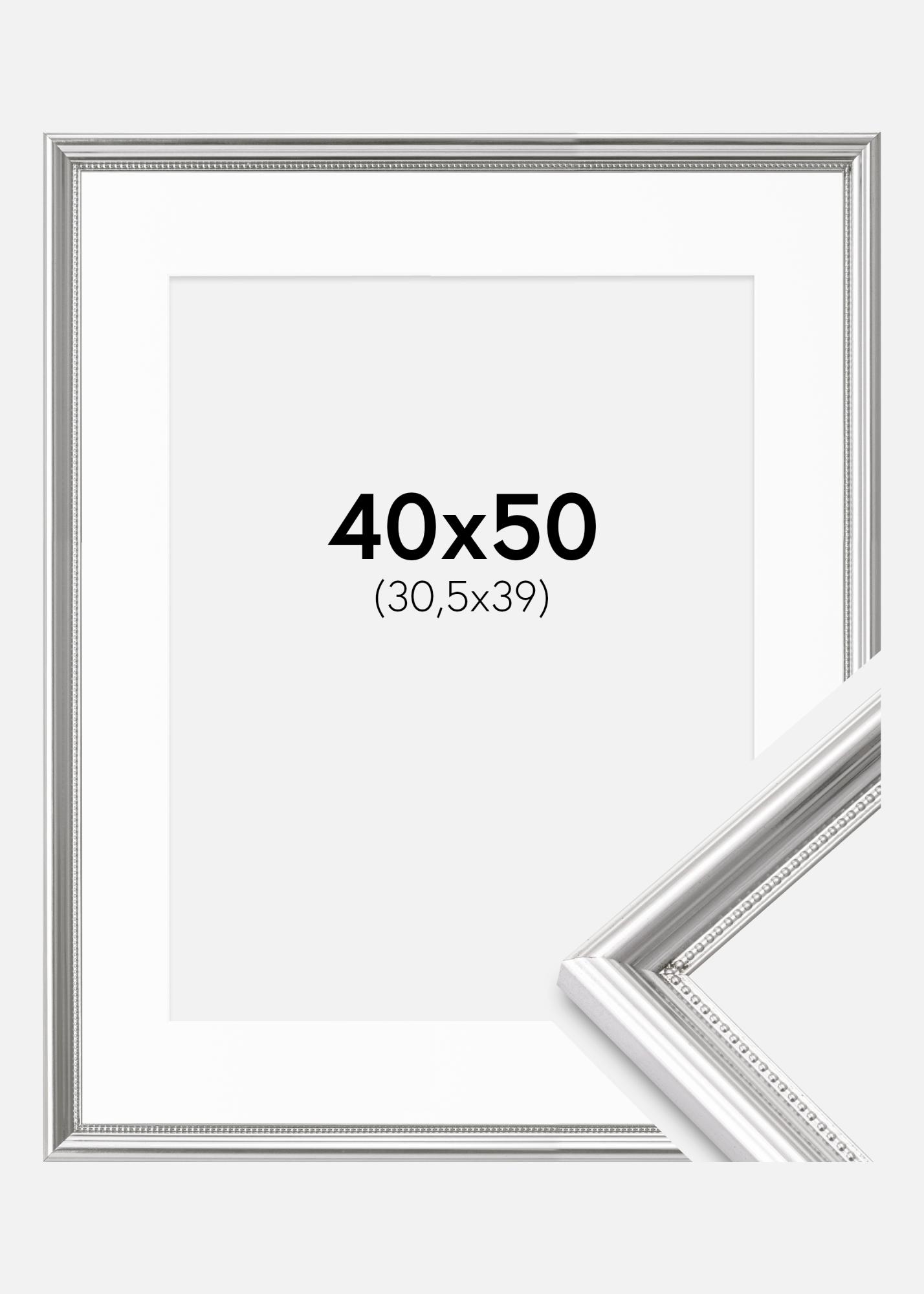 Ramme Gala Sølv 40x50 cm - Passepartout Hvit 31,5x40 cm
